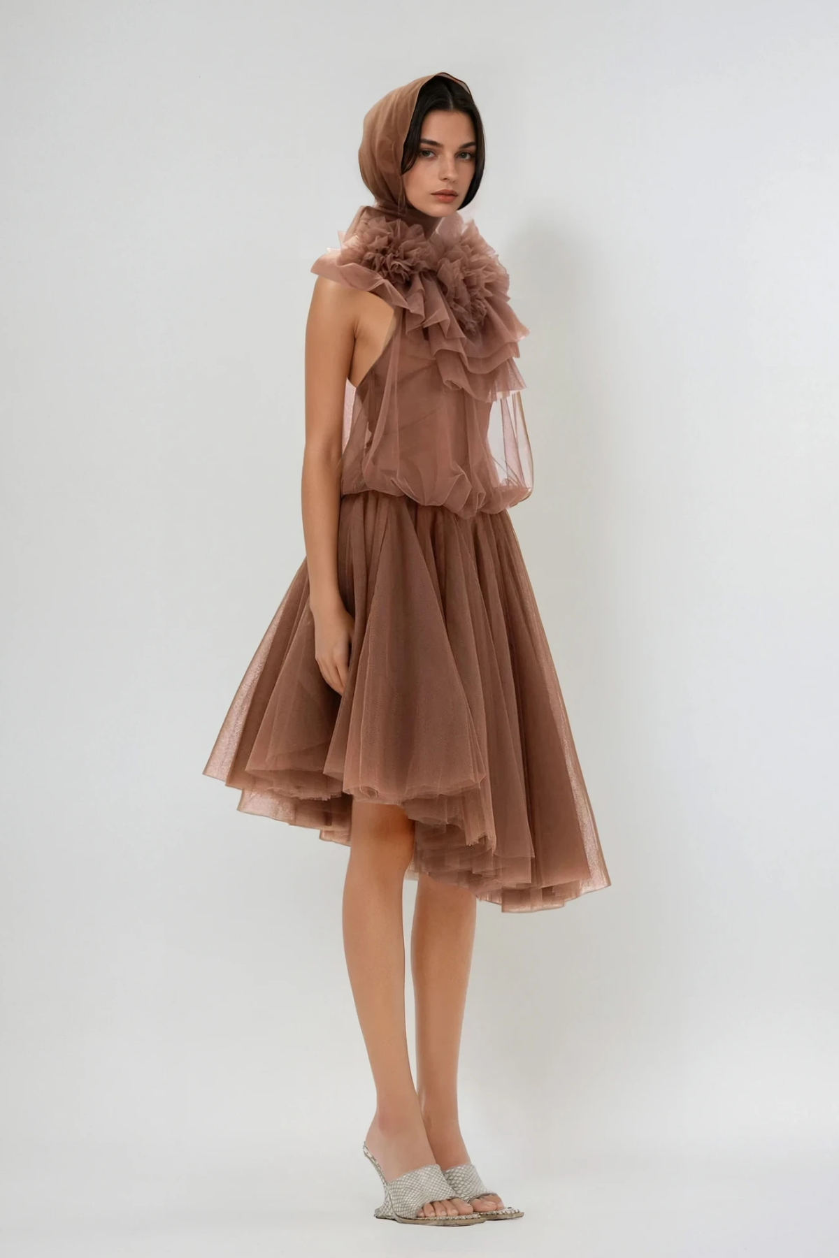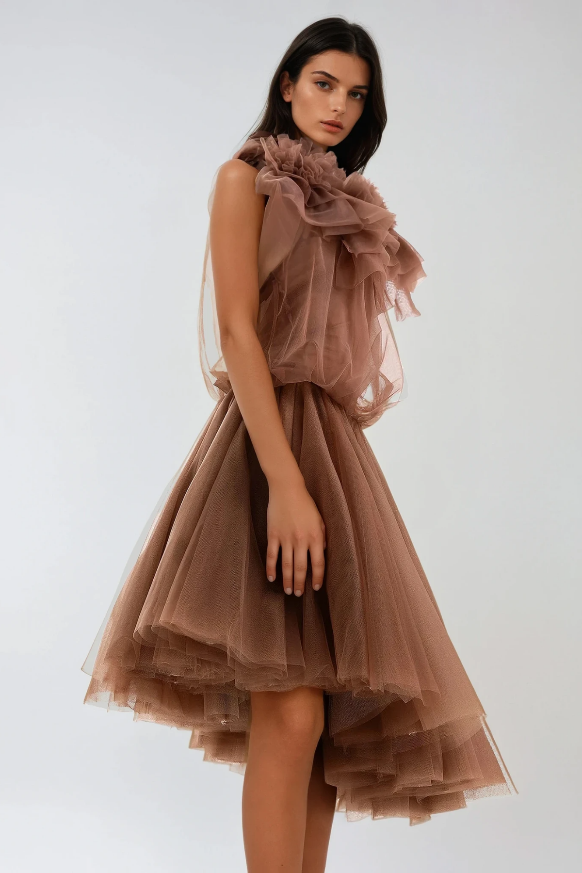 Drustan Flower Asymmetric Mesh Midi Dress This sophisticated midi dress showcases an asymmetric silhouette that creates dynamic movement and visual interest. The delicate mesh construction offers breathable comfort while maintaining an elegant aesthetic, perfect for elevated occasions or refined everyday wear. Floral detailing adds a romantic dimension to the contemporary design. The asymmetric cut flatters various body types by creating subtle dimension and elongating the frame. Ideal for those seeking a dress that balances modern design sensibility with timeless femininity.