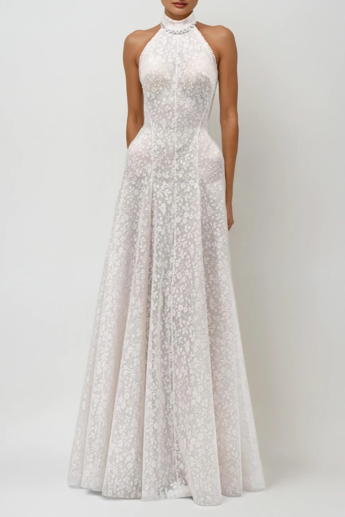 Du Halter Neck Floral Lace Maxi Dress