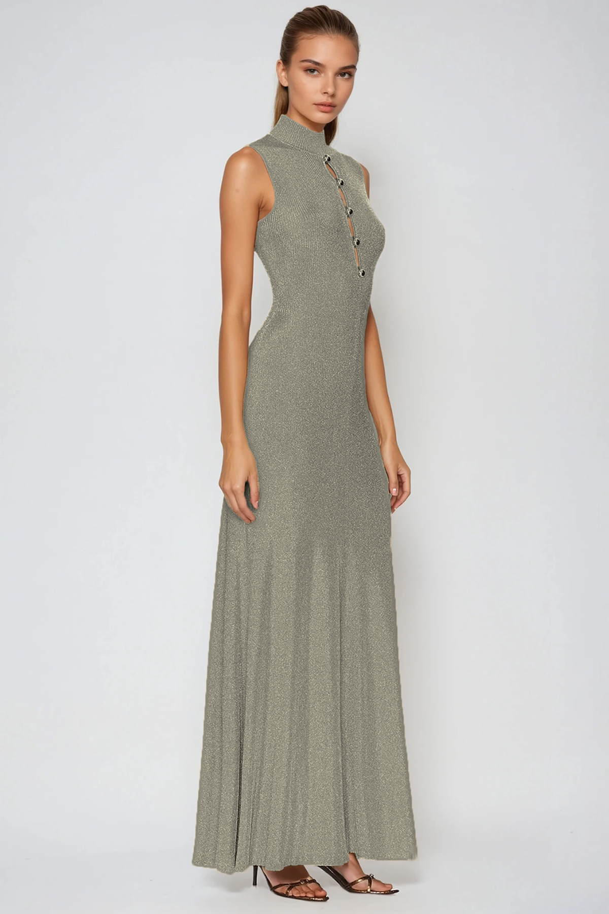 The Duarte Sleeveless Cutout Knit Maxi Dress combines contemporary design with refined elegance. This floor-length silhouette features strategic cutout detailing that adds visual interest while maintaining sophistication. Crafted from quality knit fabric, it offers comfortable wear with a flattering drape. The sleeveless design makes it versatile for layering or wearing solo during warmer seasons. Perfect for elevated casual occasions, evening events, or transitional styling, this dress delivers modern appeal with timeless appeal.