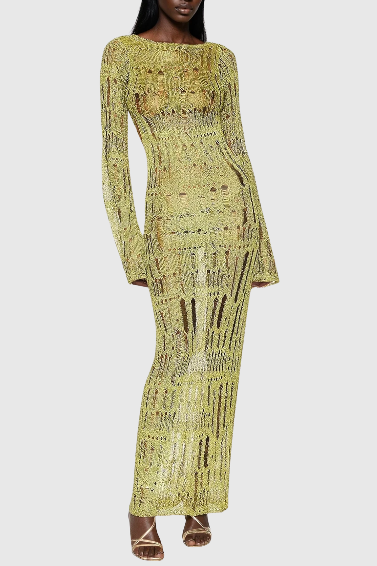The Dzana Backless Ripped Maxi Dress combines contemporary edge with sophisticated silhouette. This statement piece features a daring backless design that showcases your shoulders and upper back, while strategically placed rips add textural interest and modern attitude. The flowing maxi length provides elegant coverage below, creating a striking contrast between bold cutouts and refined proportions. Perfect for evening events, upscale casual outings, or anyone seeking to make a confident fashion statement. The design balances provocative styling with wearable elegance, making it a versatile addition to your wardrobe.