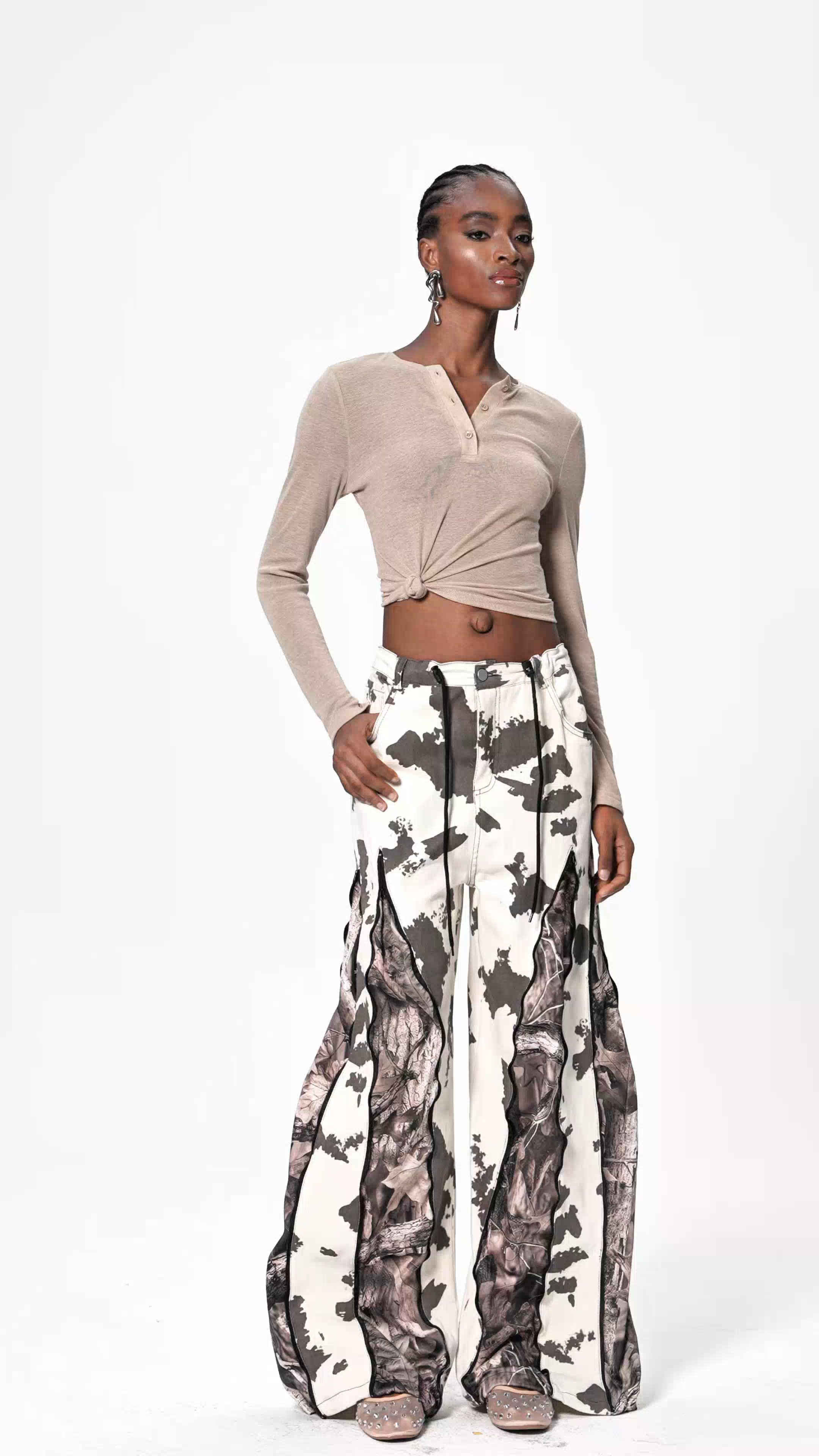 Edelmira Deconstruct Print Barrel Jeans blend contemporary design with refined craftsmanship. The deconstructed silhouette features strategic cutouts and layered paneling that create visual depth, while the barrel leg offers a modern, tapered fit through the thigh and calf. Bold print detailing adds personality without compromising versatility. Constructed from premium denim, these jeans transition seamlessly from casual to elevated styling, making them an essential piece for those who appreciate avant-garde fashion with wearable sophistication.