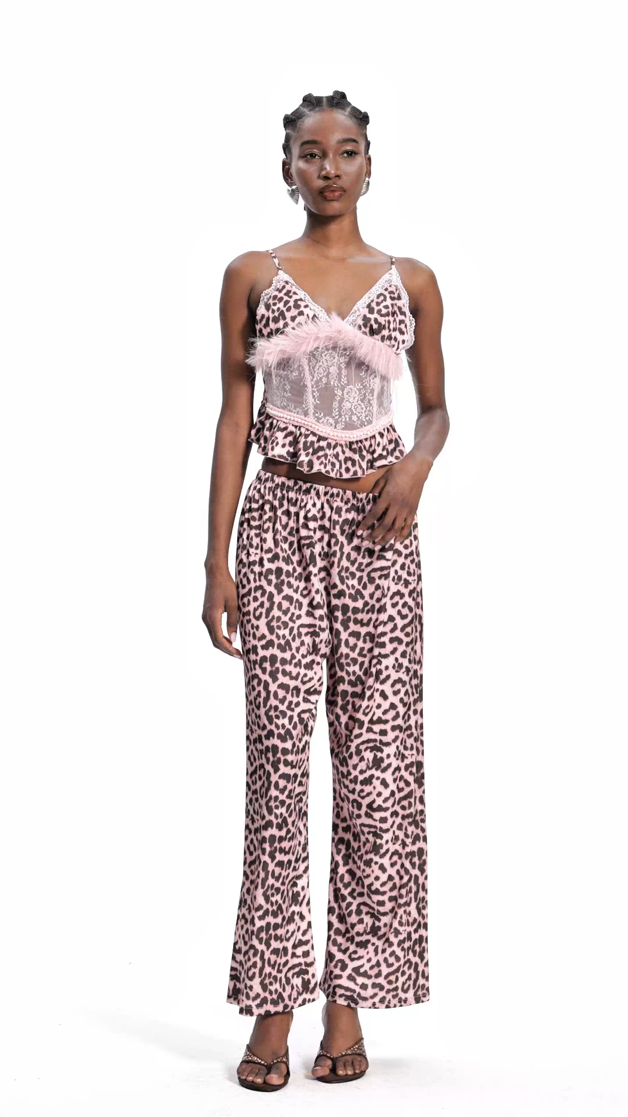Eduards Leopard Faux Fur Lace Pants Set combines luxurious textures with contemporary design. The faux fur construction delivers softness and warmth without compromising on style, while the leopard print adds a bold, timeless edge to your wardrobe. Delicate lace detailing elevates the aesthetic, creating visual interest and dimension. The coordinated set ensures effortless styling—wear together for maximum impact or separate pieces for versatile layering options. Crafted for those who appreciate quality fabrication and distinctive patterns, this set transitions seamlessly from casual outings to evening occasions.
