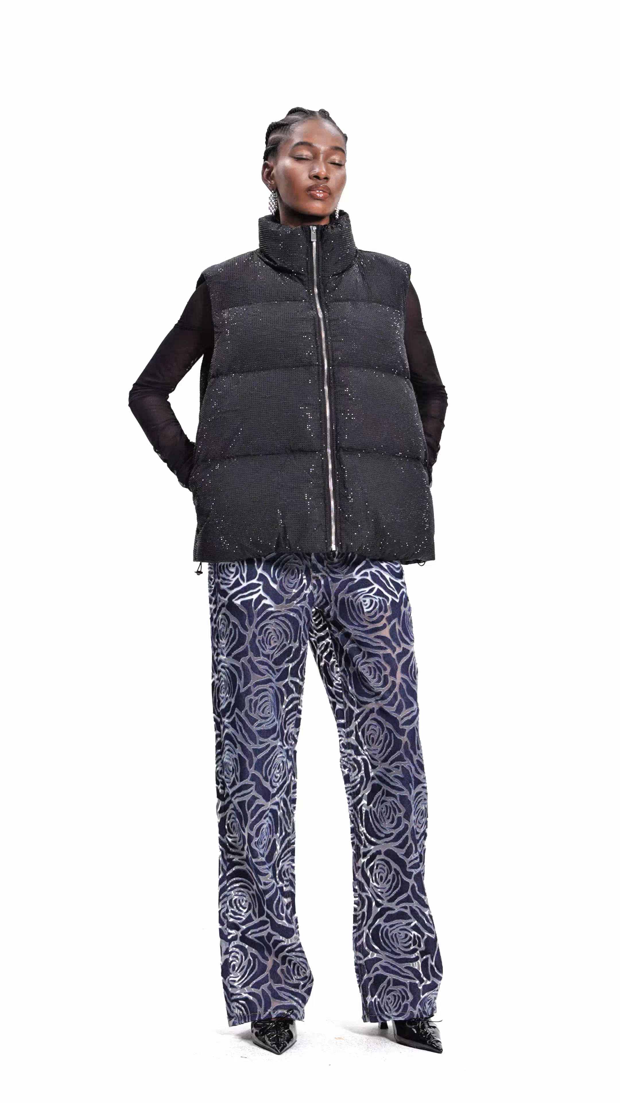 Elevate your wardrobe with the Efigenia Rhinestone Vest, a sophisticated layering piece that combines contemporary design with timeless elegance. Crafted with meticulous attention to detail, this vest features strategically placed rhinestones that catch the light beautifully, adding a touch of glamour to any ensemble. The structured silhouette flatters multiple body types while maintaining a refined aesthetic. Perfect for dressing up casual outfits or adding dimension to formal wear, this versatile vest transitions seamlessly from day to evening occasions. An investment piece that delivers both style and substance.