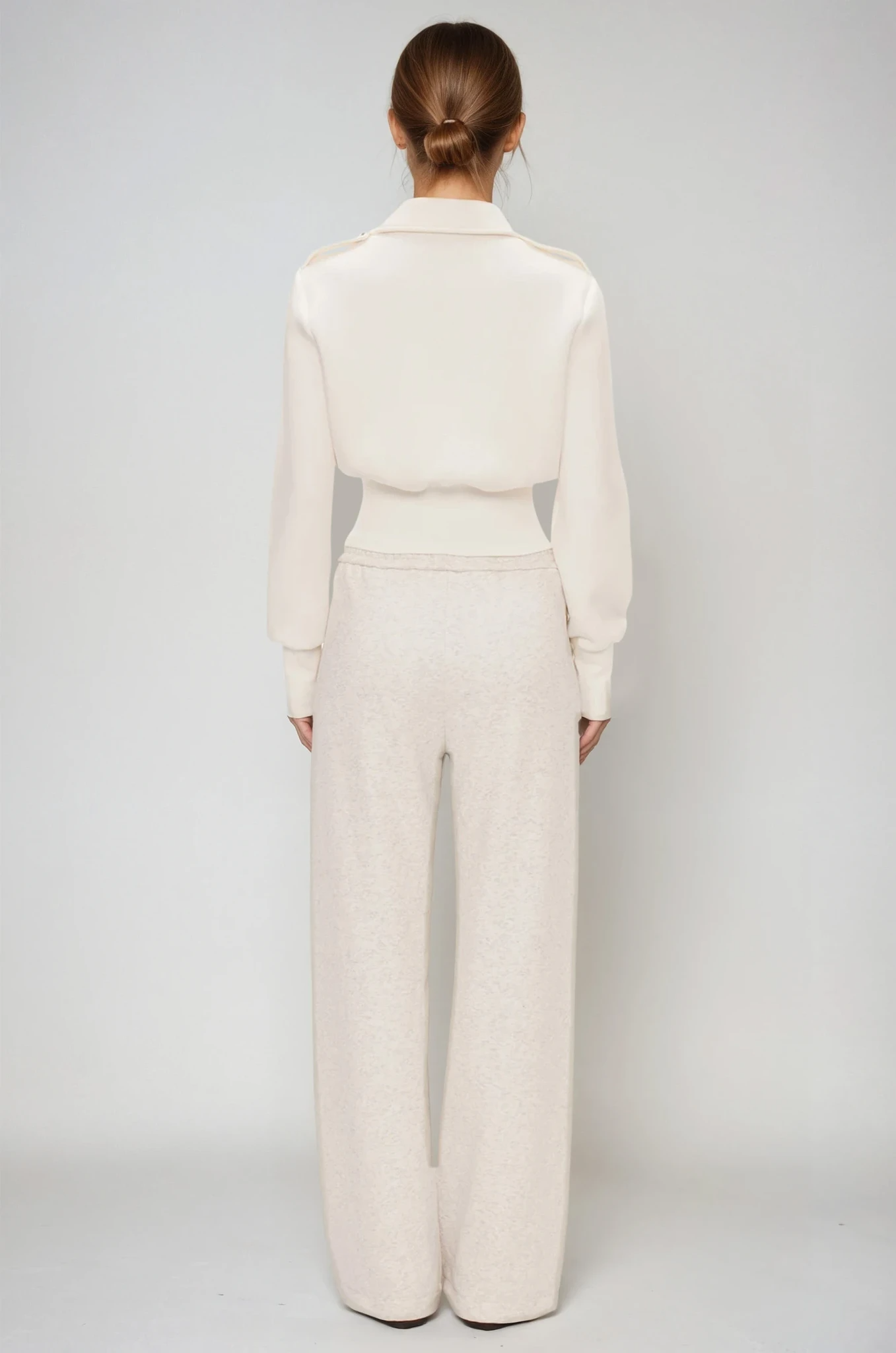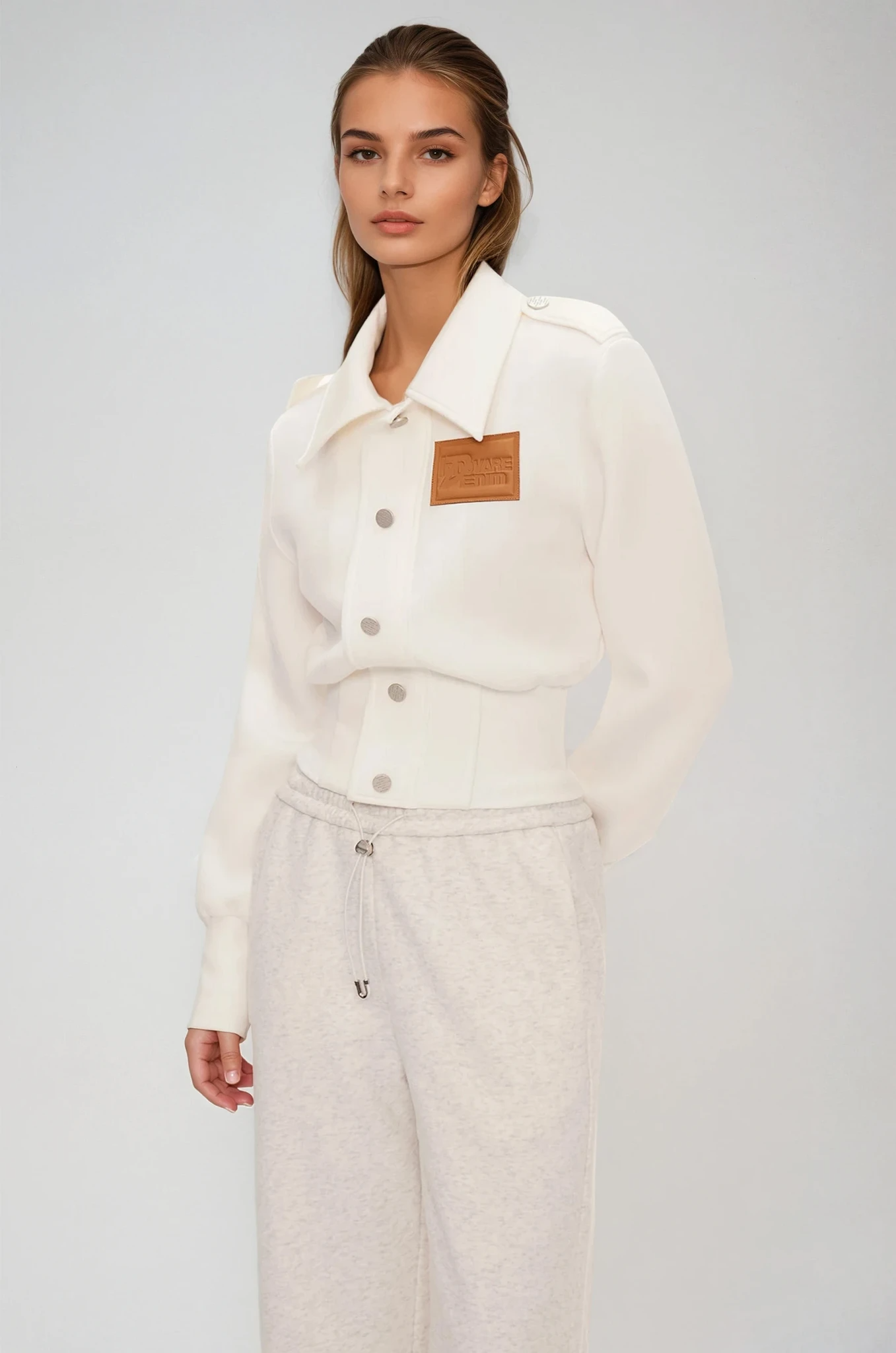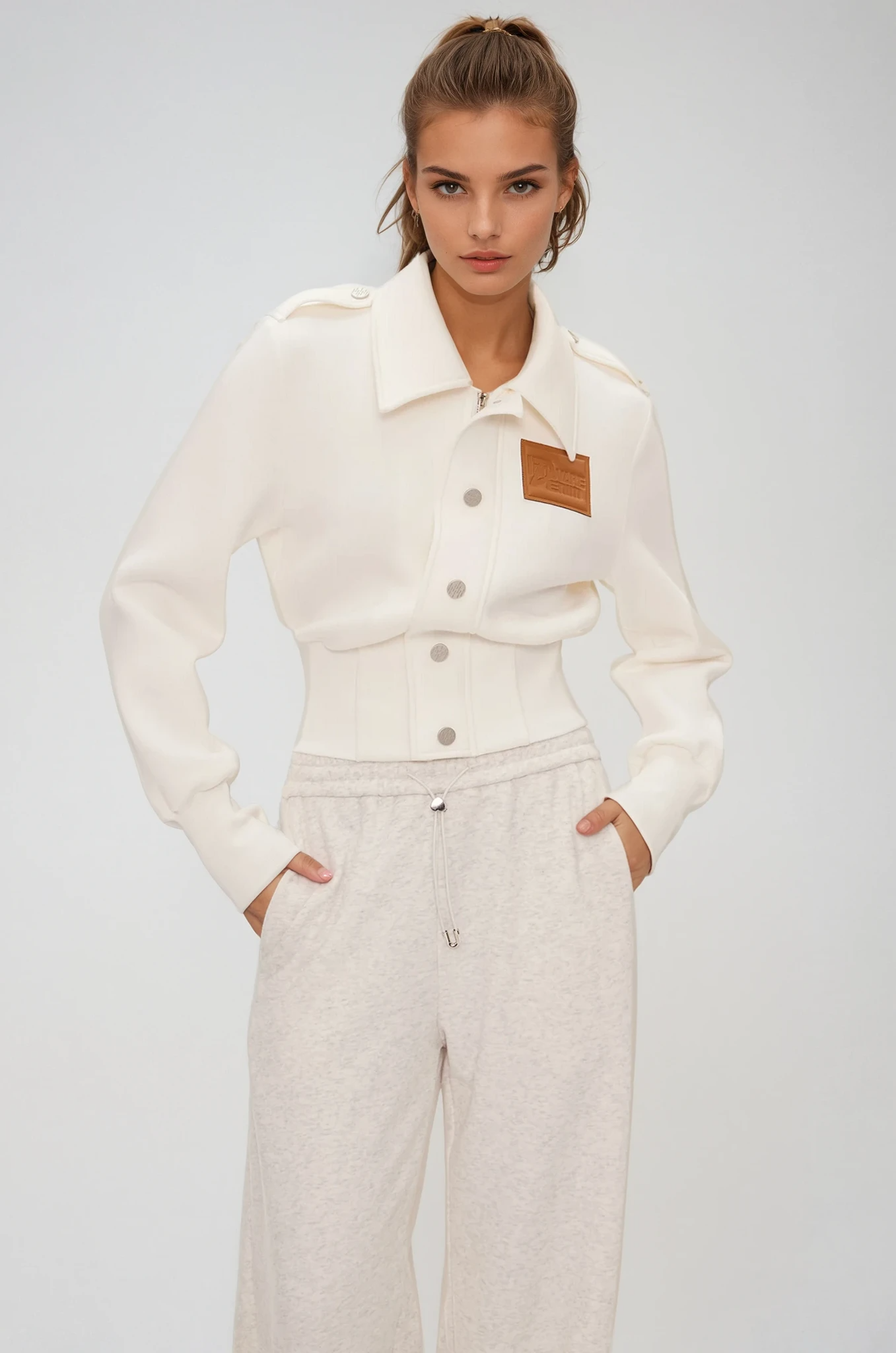 The Eimear Lapel Crop Jacket in White is a refined tailoring piece that brings polished sophistication to contemporary wardrobes. Crafted with precision, this cropped silhouette features a structured lapel collar that commands attention while maintaining understated elegance. The clean white colorway offers versatile styling potential, pairing seamlessly with high-waisted trousers, midi skirts, or layered over dresses for added dimension. Its cropped length creates a flattering proportion that elongates the frame, making it an essential layer for both professional and elevated casual settings. A timeless investment piece that transcends seasonal trends.