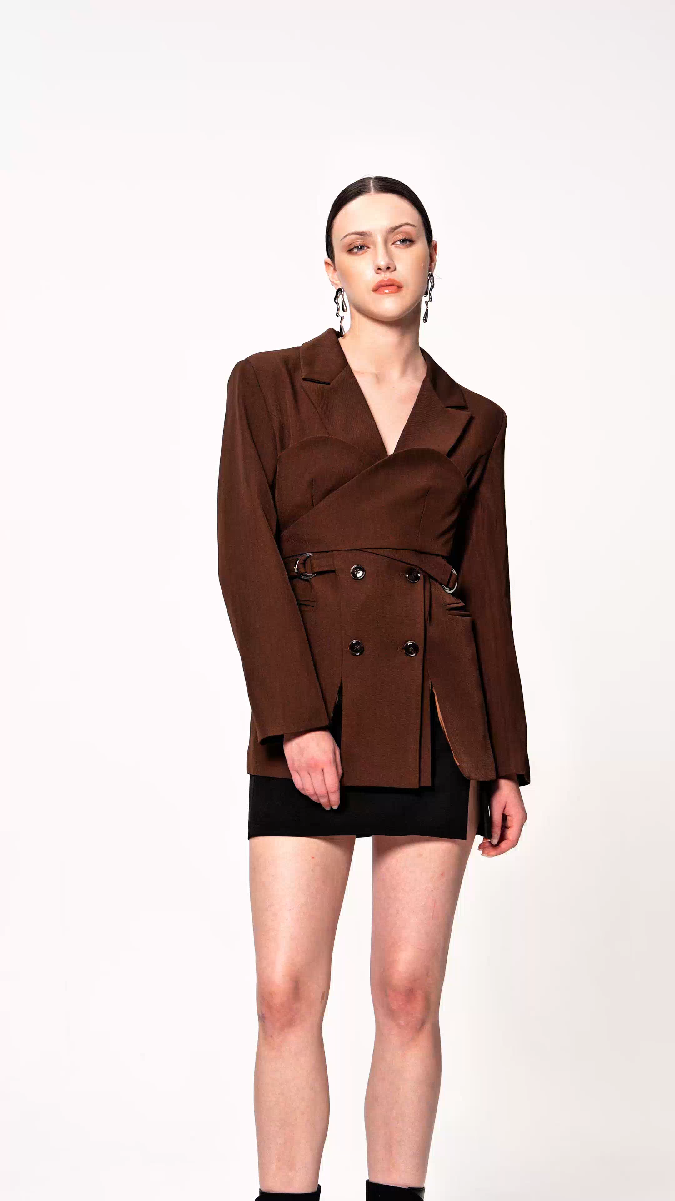 The Eirik Deconstruct Split Blazer redefines contemporary tailoring through its innovative asymmetrical construction. Featuring a deliberately deconstructed silhouette with strategic split seaming, this piece merges avant-garde design with wearable sophistication. The sharp tailoring maintains structural integrity while the split detailing creates visual movement and depth. Crafted for the discerning wearer who appreciates architectural fashion, this blazer transitions seamlessly from refined office settings to curated evening occasions. A statement piece that demonstrates how deconstruction elevates rather than compromises polished style.