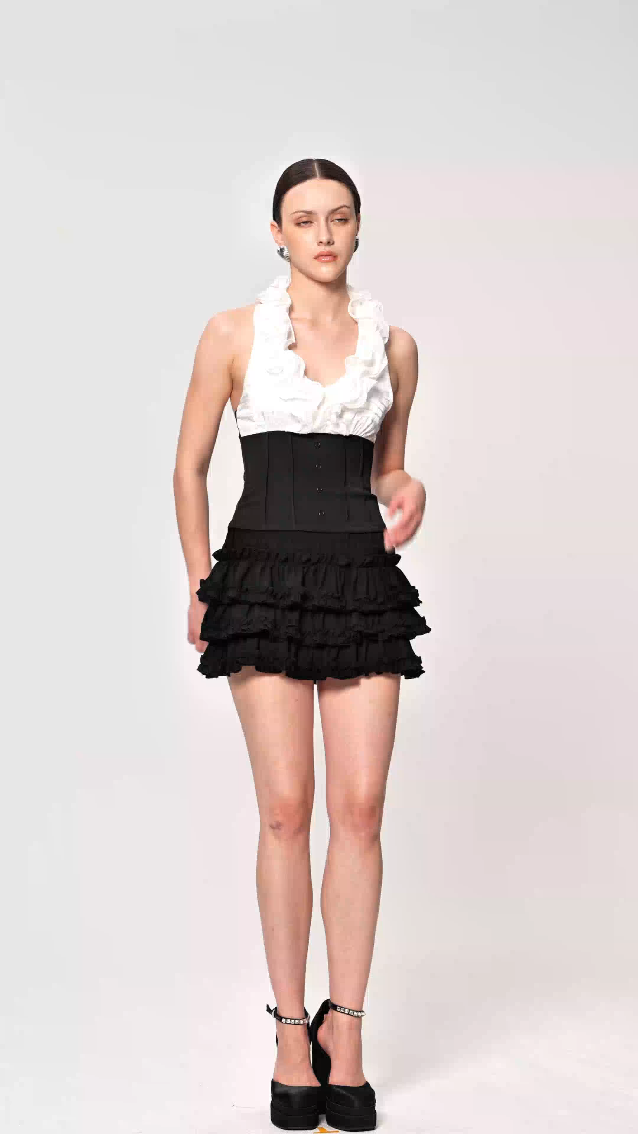 Elevate your wardrobe with the Eithan Ruffle Corset Skirt Set, a sophisticated two-piece ensemble that seamlessly blends structured elegance with romantic detailing. The fitted corset top provides sculpted support and a refined silhouette, while the cascading ruffle skirt adds movement and dimension. Crafted for those who appreciate fashion-forward design, this set transitions effortlessly from evening events to upscale casual occasions. Perfect for making a confident statement.