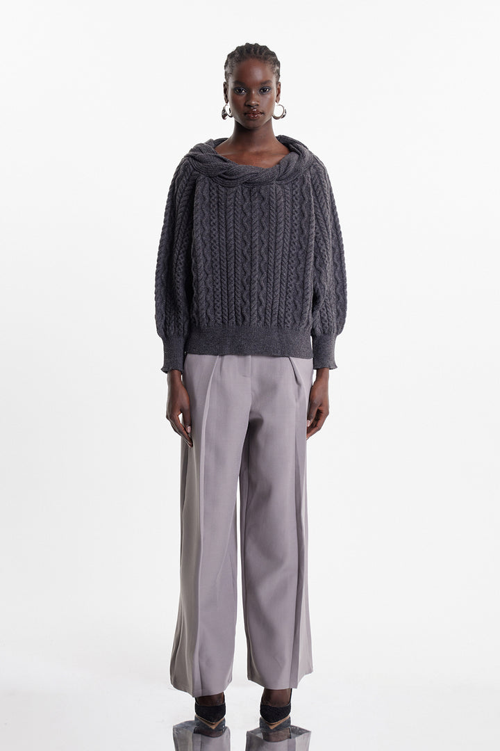 The Elah Twist Knit Top in Grey combines refined craftsmanship with contemporary design. This versatile piece features a distinctive twisted knit construction that adds visual interest and dimension to your wardrobe. The neutral grey tone pairs effortlessly with both casual and polished looks, making it an essential layering piece or standalone statement. Crafted for comfort and durability, this top delivers the quality and sophistication that discerning customers expect from elevated everyday wear.