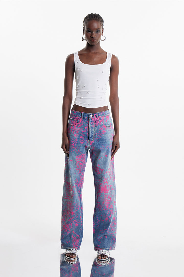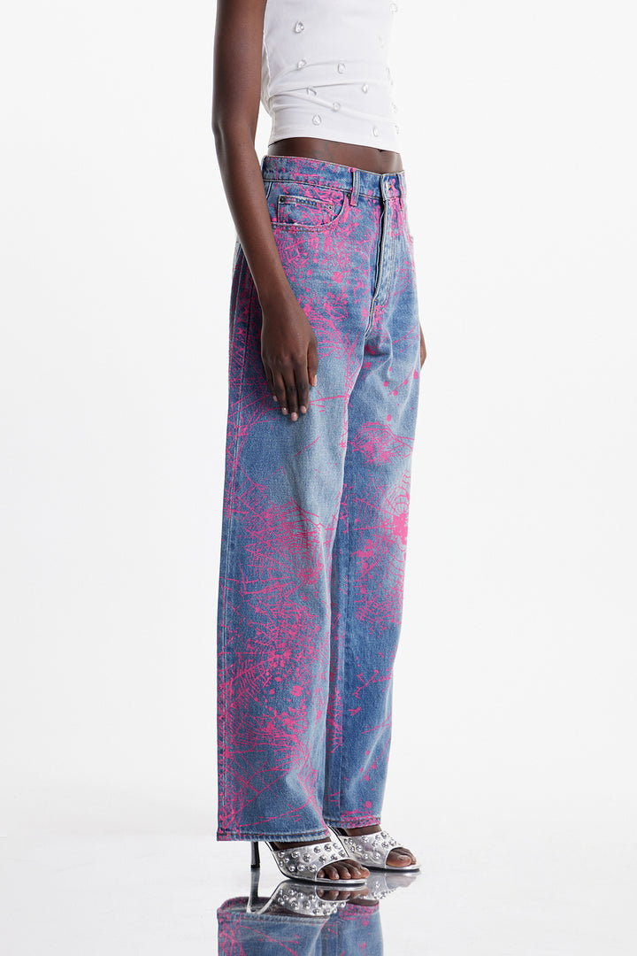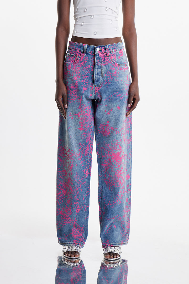 Elanur Splattered Jeans feature a bold, artistic aesthetic with carefully placed paint splatters that transform classic denim into a statement piece. Crafted from premium denim fabric, these jeans deliver durability and comfort for everyday wear while making an unmistakable visual impact. The splatter design adds contemporary edge to your wardrobe, perfect for those seeking to elevate their casual style with intentional, eye-catching details. Versatile enough to pair with minimalist tops or graphic tees, these jeans bridge the gap between artistic expression and wearable fashion.