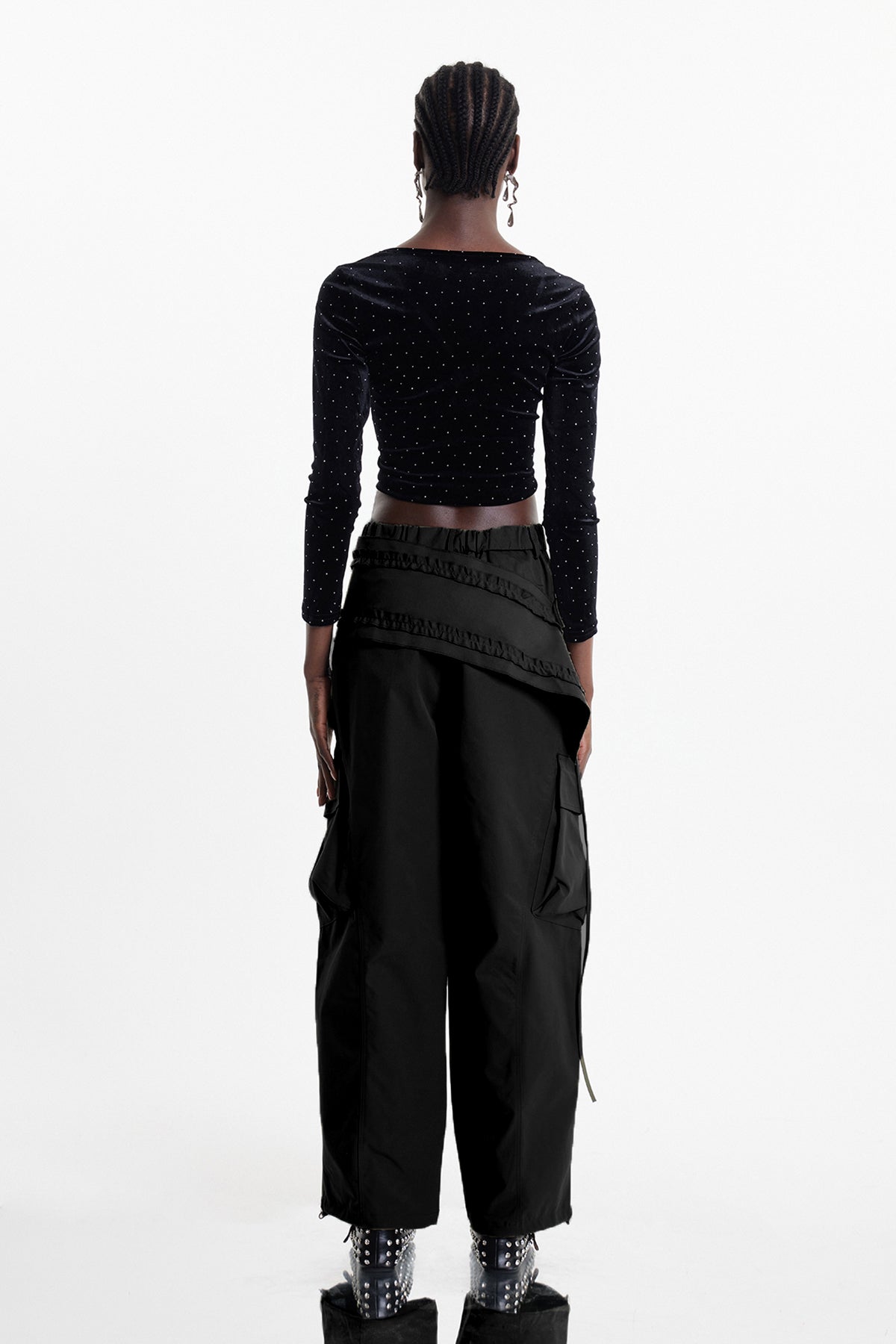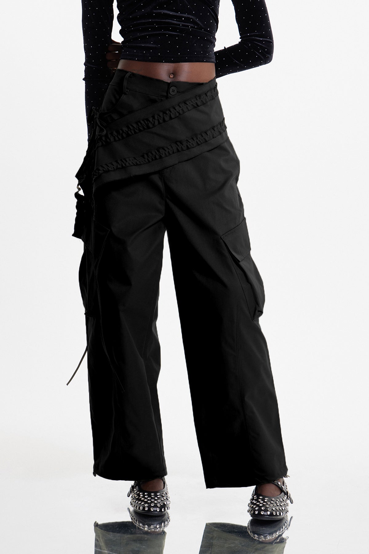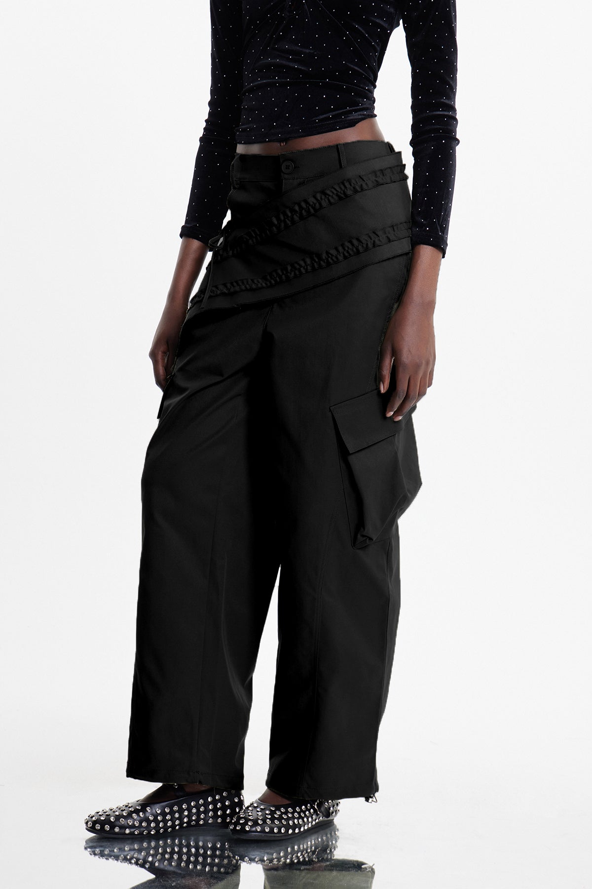 Elazar's deconstructed cargo pants redefine utilitarian style through asymmetrical design and architectural tailoring. Crafted in premium black fabric, these pants feature strategic paneling, offset pockets, and unconventional seaming that elevates everyday wear into statement pieces. The cargo silhouette maintains functional storage while the deconstruct elements introduce contemporary edge. Perfect for those seeking avant-garde fashion that doesn't compromise on wearability. A versatile foundation for layered, fashion-forward wardrobes.