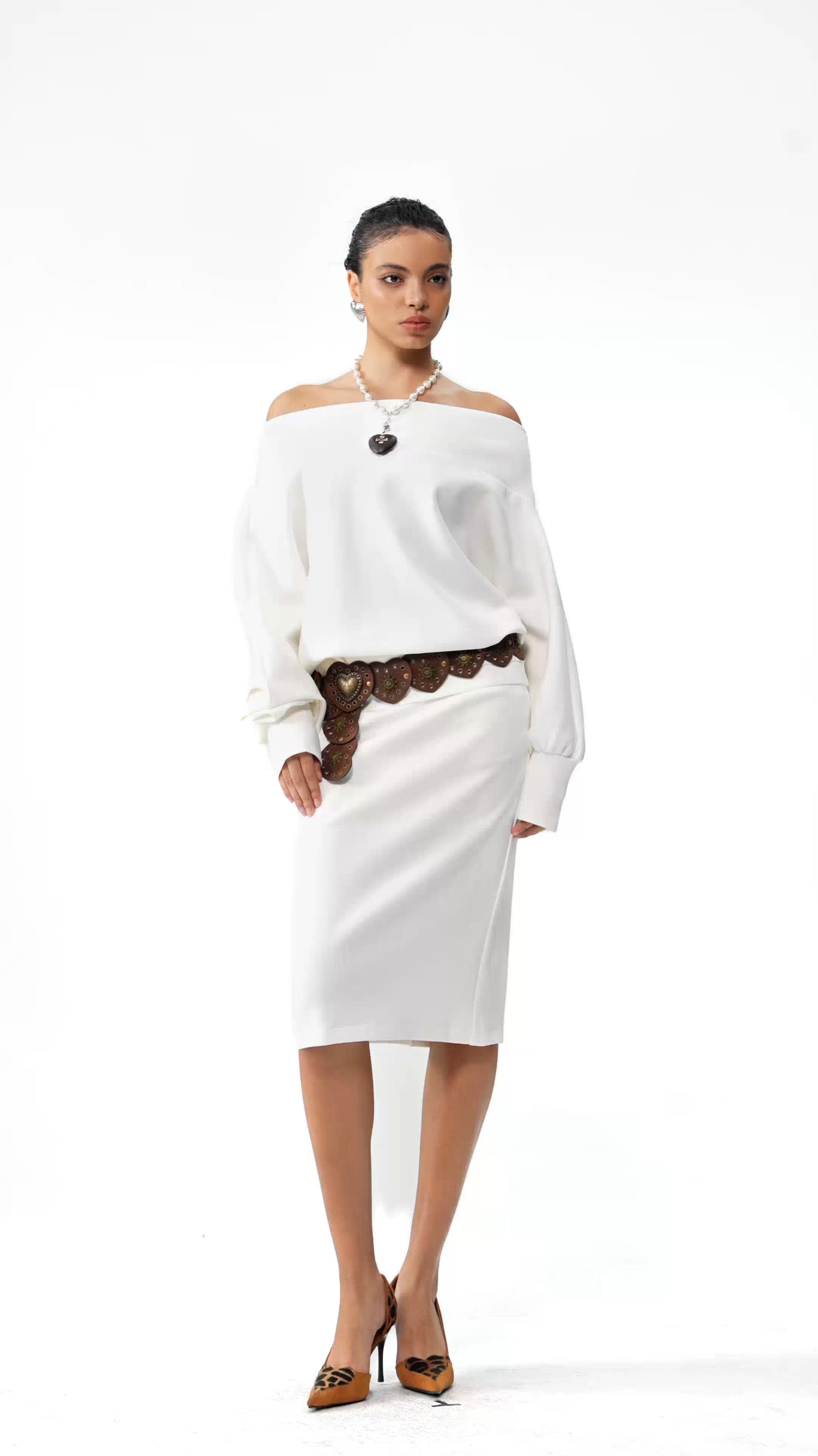 The Eleanore Off Shoulder Skirt Set combines contemporary elegance with versatile styling. This two-piece ensemble features a graceful off-shoulder top that frames the neckline beautifully, paired with a coordinated skirt for a polished, cohesive look. The off-shoulder design offers a modern silhouette while maintaining sophistication, making it ideal for elevated casual occasions, date nights, or seasonal celebrations. Quality construction ensures lasting wear, while the coordinated set simplifies outfit planning. Perfect for those seeking refined pieces that transition effortlessly from day to evening.