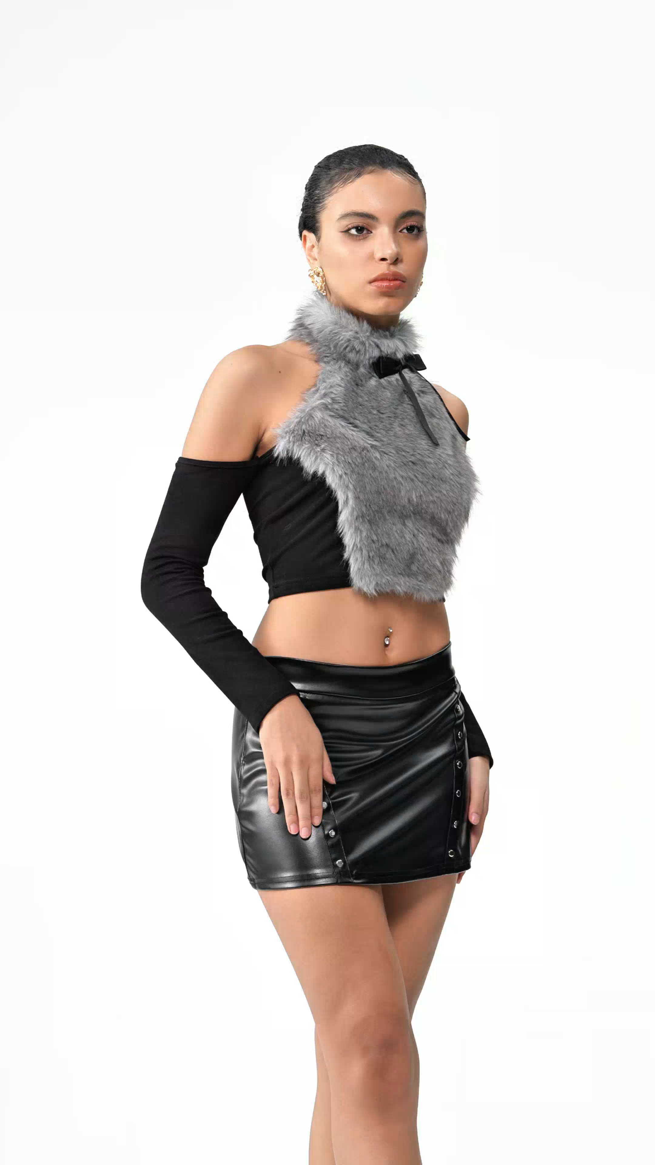 Elevate your wardrobe with the Elihu Faux Fur Cutout Top in Grey, a sophisticated piece that seamlessly blends texture and modern design. Crafted from premium faux fur, this top delivers luxurious softness without compromising on style or ethics. Strategic cutout details create visual interest and contemporary appeal, making it an ideal choice for both casual outings and elevated occasions. The neutral grey tone pairs effortlessly with your existing pieces, offering versatility across multiple seasons. Perfect for those who appreciate quality craftsmanship and fashion-forward silhouettes.