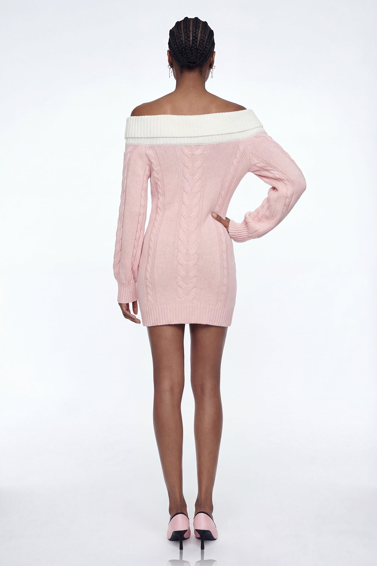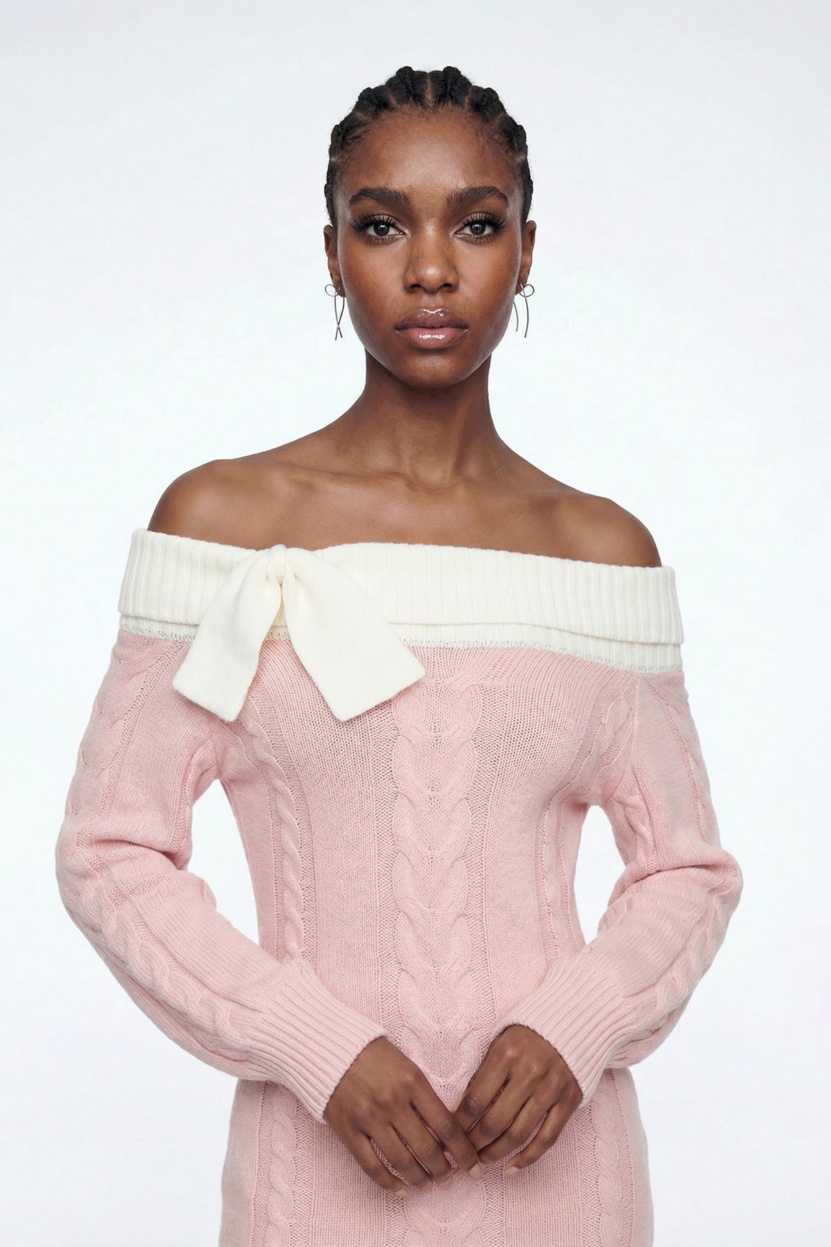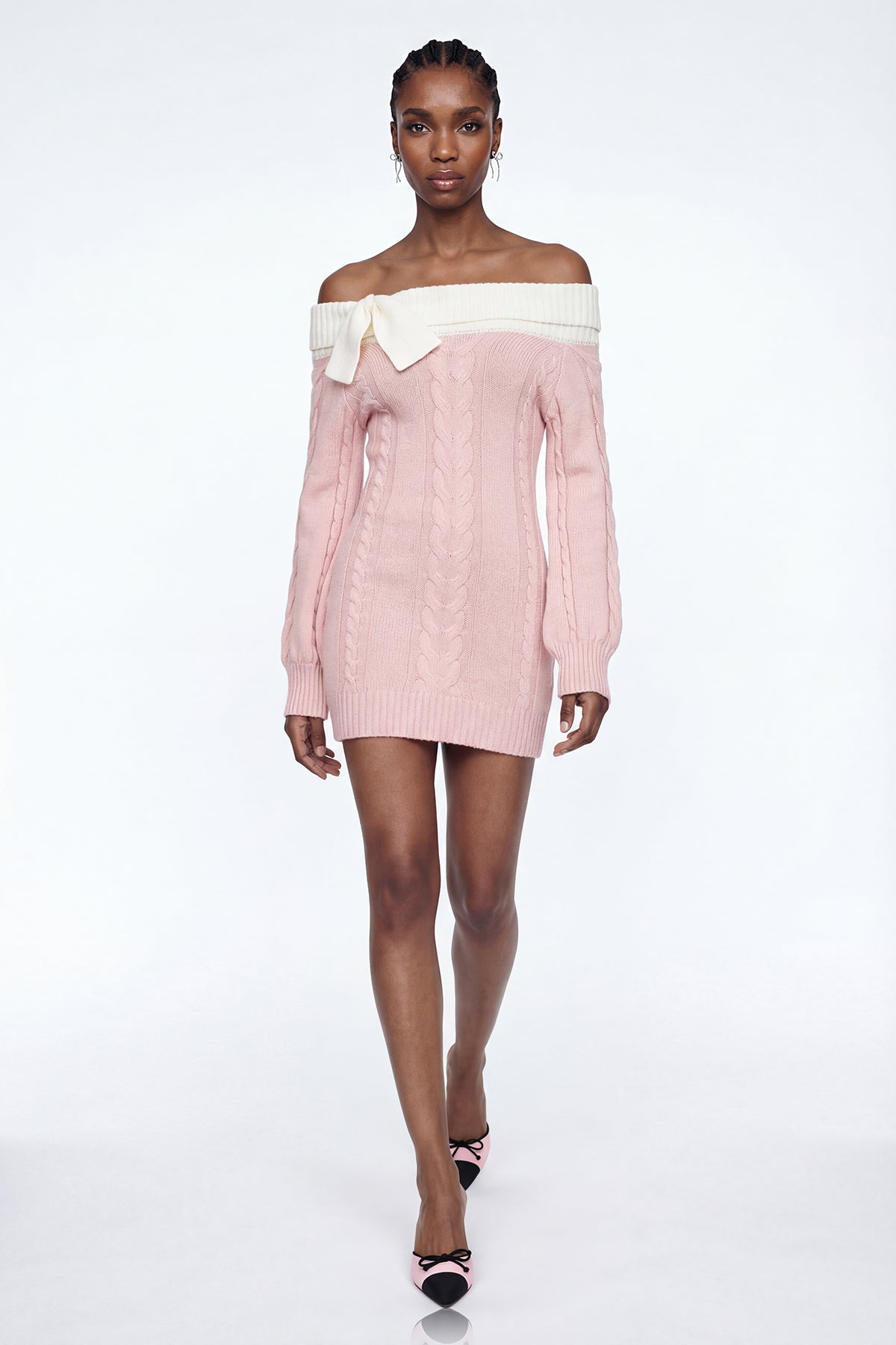 The Eliso Off Shoulder Bow Knit Dress in Pink combines contemporary elegance with refined craftsmanship. This piece features a flattering off-shoulder silhouette that gracefully frames the neckline, while a delicate bow detail adds a sophisticated accent. Crafted from premium knit fabric, the dress offers a comfortable, form-fitting design that moves with you throughout the day. The soft pink hue provides versatility for both casual and elevated occasions. Perfect for those seeking a polished wardrobe staple that balances modern style with timeless appeal.