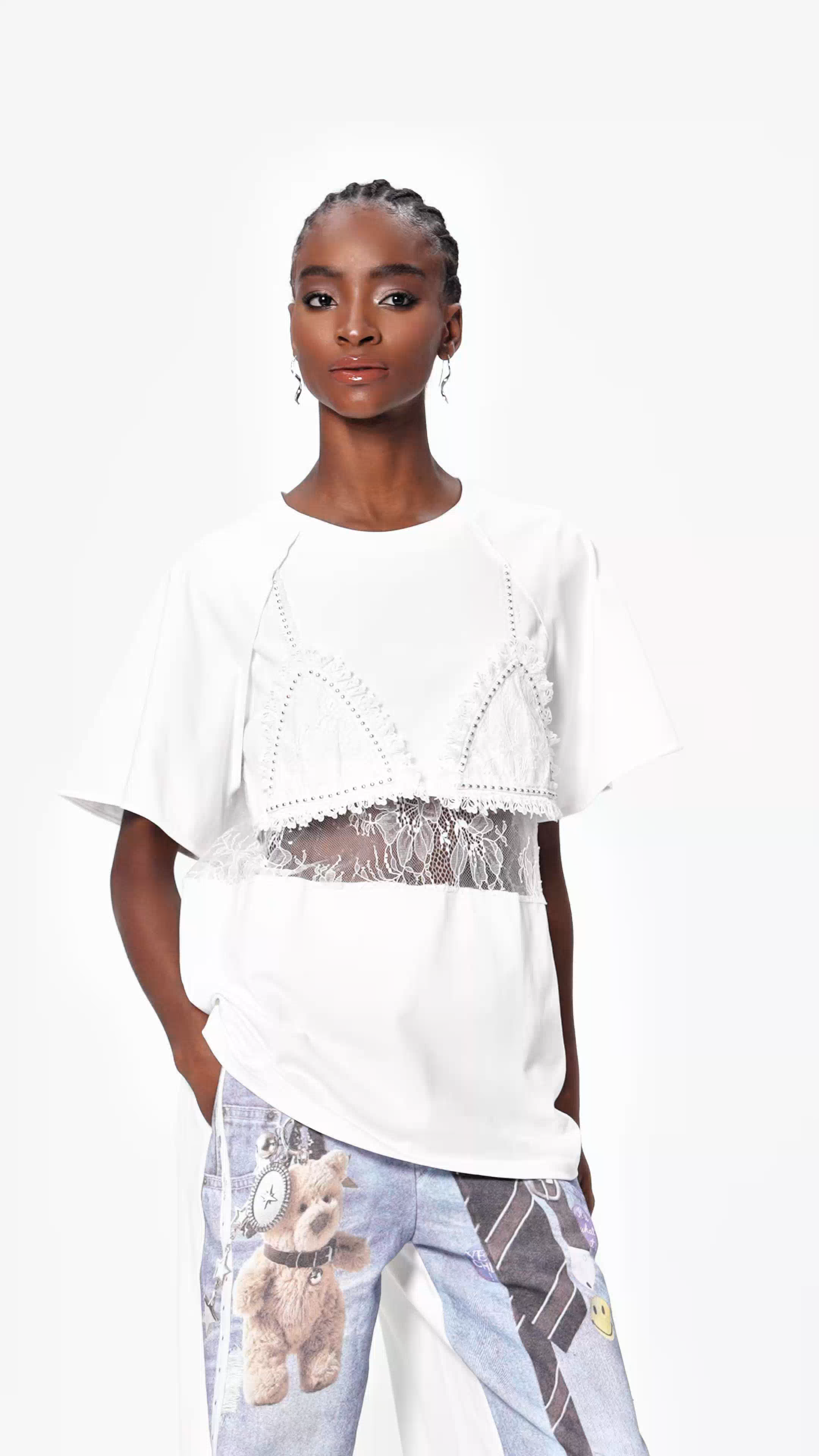 The Elliott Lace Cutout T Shirt delivers refined sophistication through its strategic lace detailing and clean white palette. This piece combines contemporary design with timeless elegance, featuring carefully placed cutouts that add visual interest without compromising wearability. Crafted for versatility, it transitions seamlessly from casual daytime styling to evening occasions. The lace elements introduce texture and dimension, elevating a classic tee silhouette. Perfect for those seeking understated luxury in their everyday wardrobe.