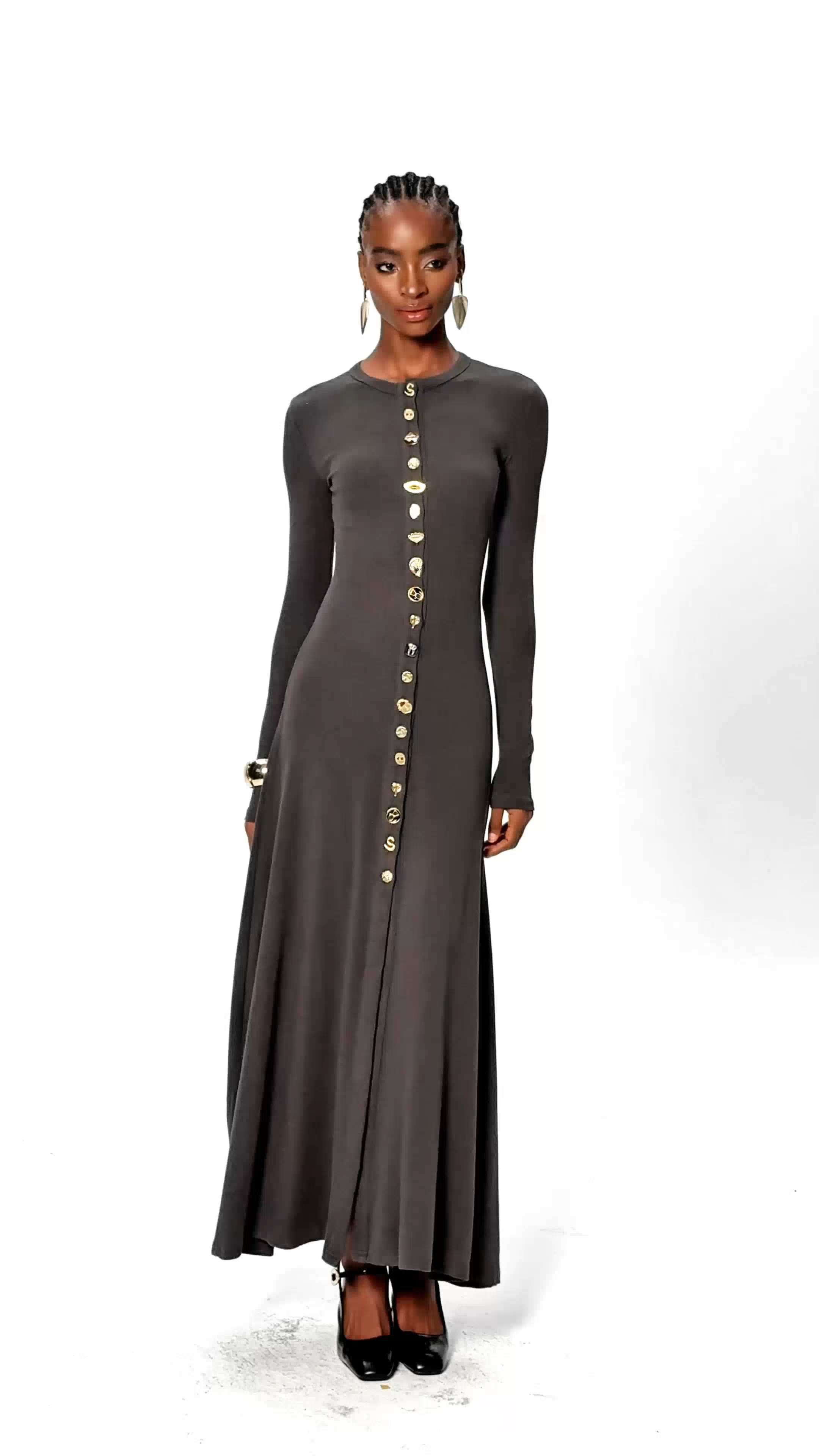 The Elodie Button Ruffle Maxi Dress in Grey combines timeless elegance with contemporary design. This sophisticated piece features delicate ruffle detailing and a refined button-front closure, creating a polished silhouette perfect for both formal occasions and elevated everyday wear. The flowing maxi length offers graceful movement and versatile styling options. Crafted with attention to detail, this grey dress transitions seamlessly from day to evening, making it an essential addition to any discerning wardrobe.
