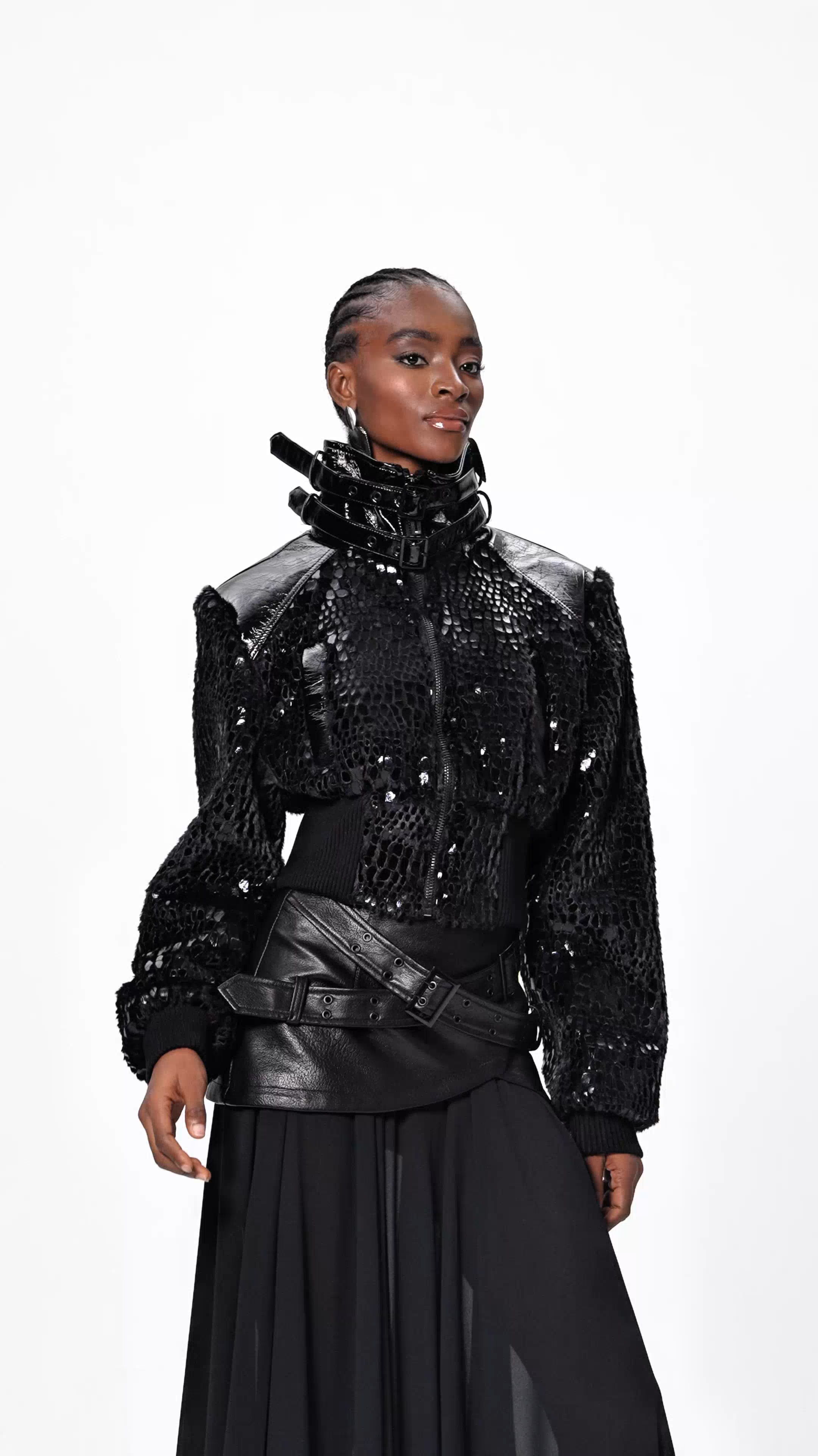 The Elroy Asymmetric Sequin Leather Jacket combines avant-garde design with premium craftsmanship. Featuring an asymmetrical cut and intricate sequin detailing, this statement piece elevates any wardrobe with contemporary flair. Constructed from supple leather, it offers both durability and refined elegance. Perfect for those seeking to make a bold fashion statement while maintaining sophisticated style.