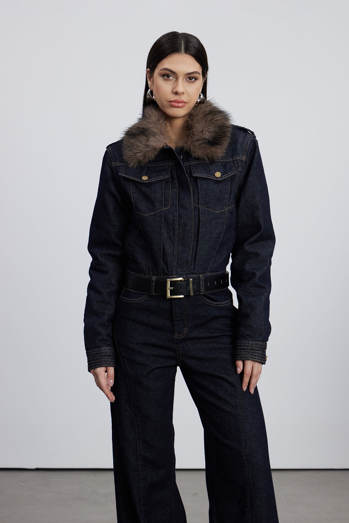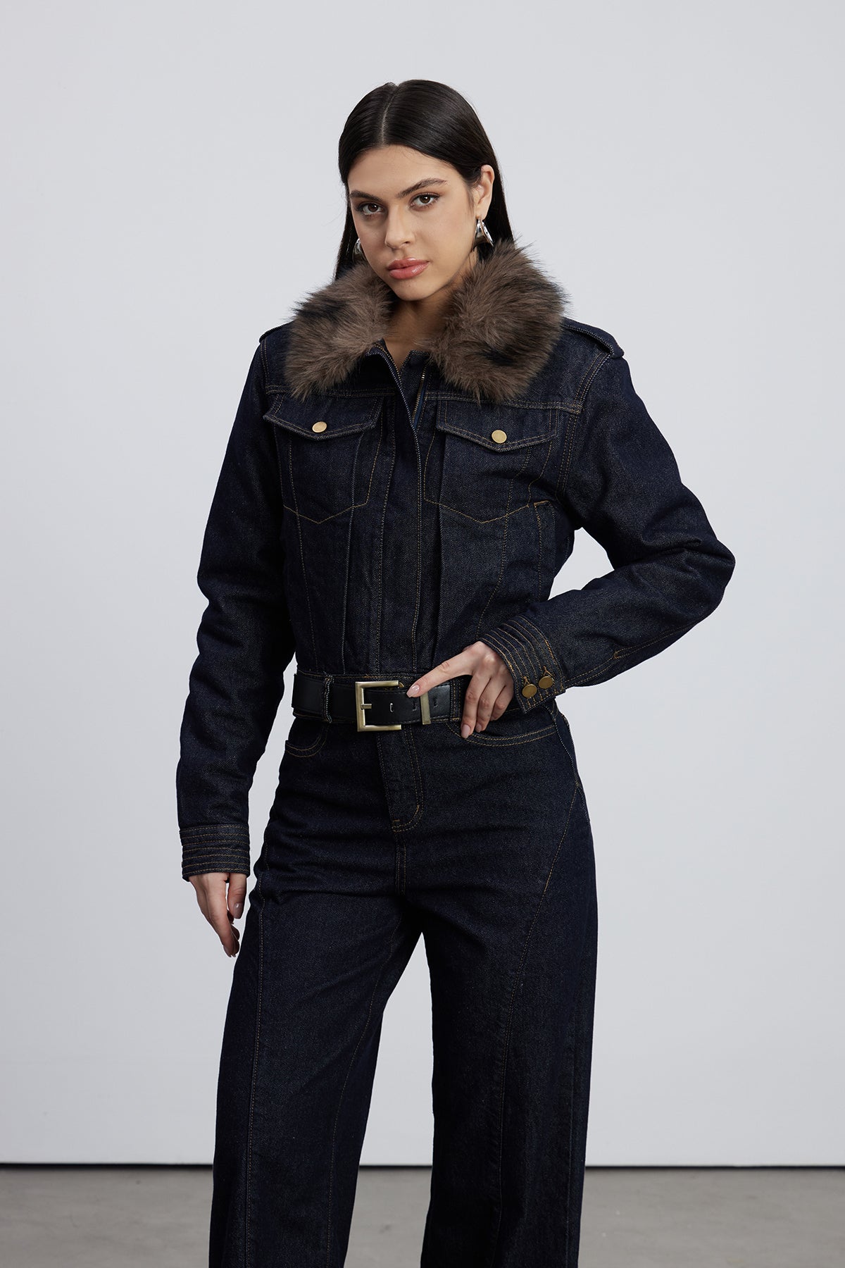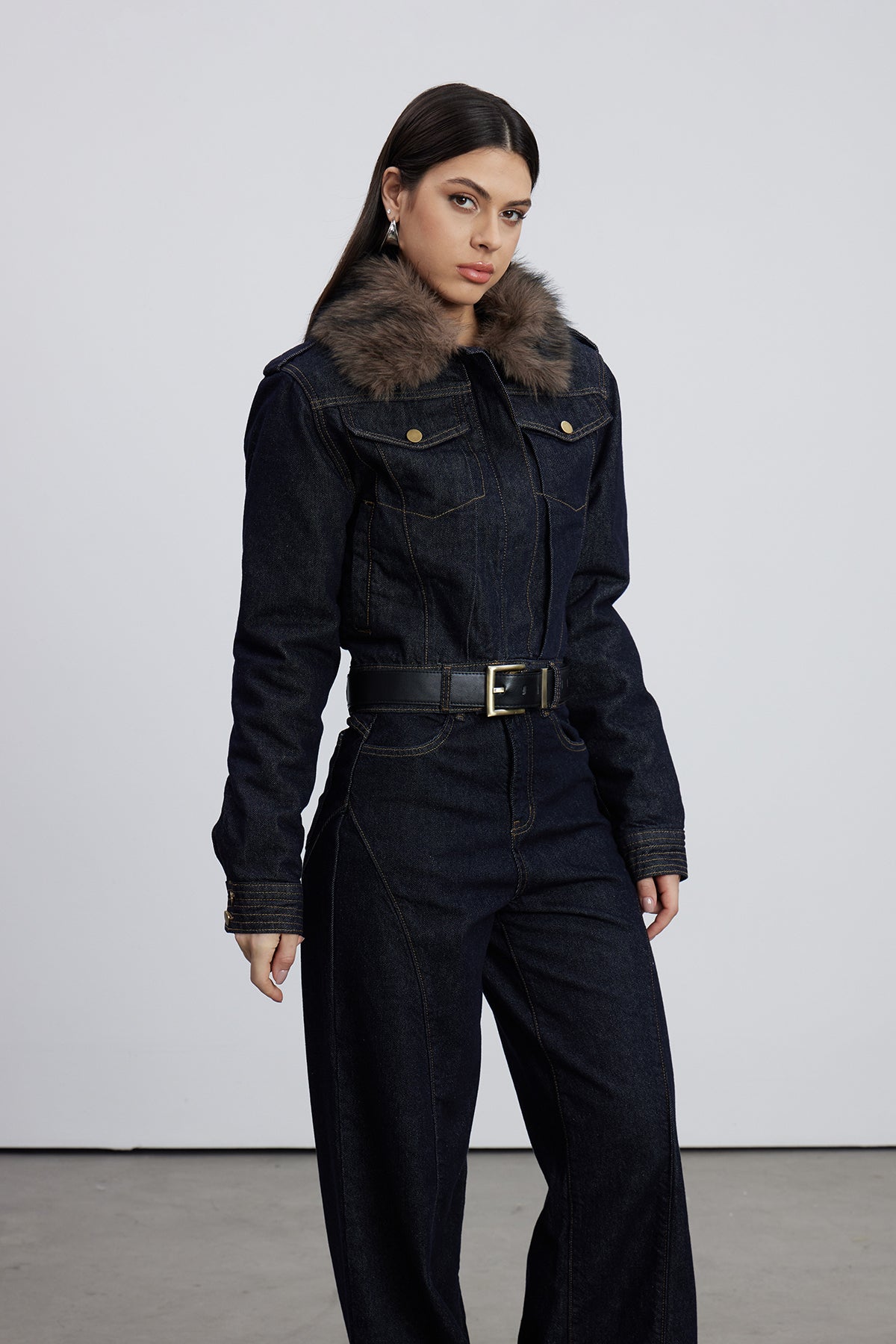 Elevate your denim collection with the Emeterio Faux Fur Denim Pants Set in Dark Wash. This sophisticated two-piece ensemble combines classic dark-wash denim with luxurious faux fur accents, delivering a refined aesthetic that transitions seamlessly from casual to elevated occasions. The expertly crafted construction ensures durability and comfort, while the faux fur detailing adds an unexpected layer of texture and visual interest. Perfect for those who appreciate quality craftsmanship and distinctive style, this set offers versatility without compromising on contemporary design. An investment piece that commands attention and withstands seasonal trends.