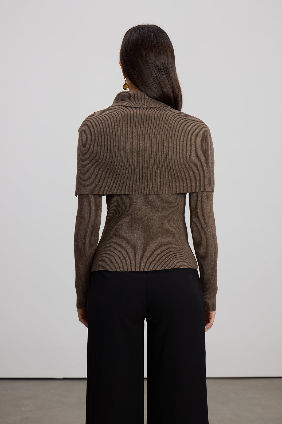 Emigdia Shawl Knit Top In Brown Crafted from premium knit fabric, this shawl-collar top delivers sophisticated layering versatility. The draped collar design creates an elegant silhouette while maintaining comfort for everyday wear. Rich brown tones complement any wardrobe, transitioning seamlessly from casual to polished settings. The structured knit construction ensures durability and shape retention through repeated wear. Perfect for building a refined, timeless collection of essentials.