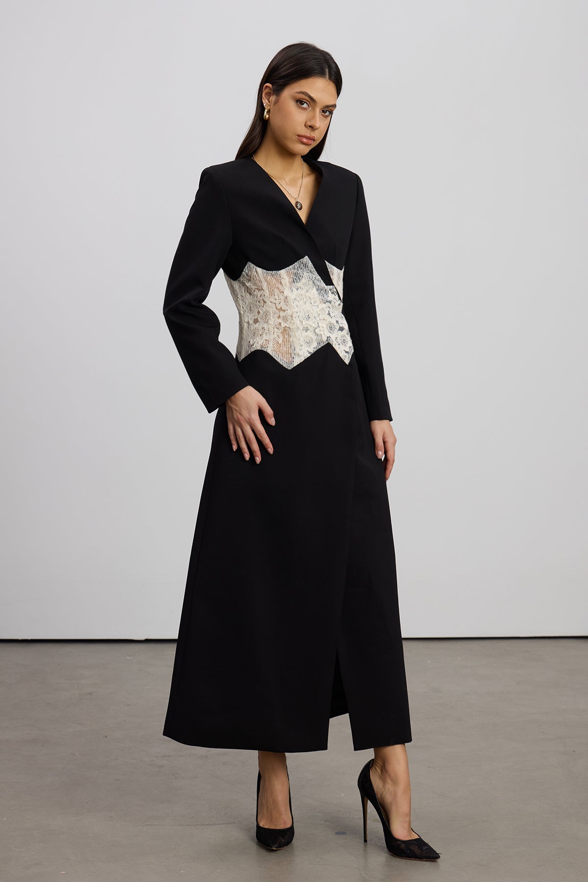The Emine Embroidered Mesh Coat combines sheer elegance with contemporary design. Crafted from premium mesh fabric, this piece features intricate embroidery detailing that adds visual depth and sophistication. The lightweight construction makes it ideal for layering or wearing as a statement piece during transitional seasons. Perfect for those seeking refined style with artistic flair, this coat elevates any wardrobe with its distinctive texture and refined craftsmanship.