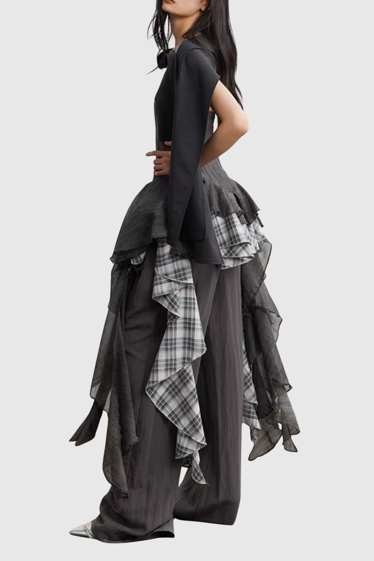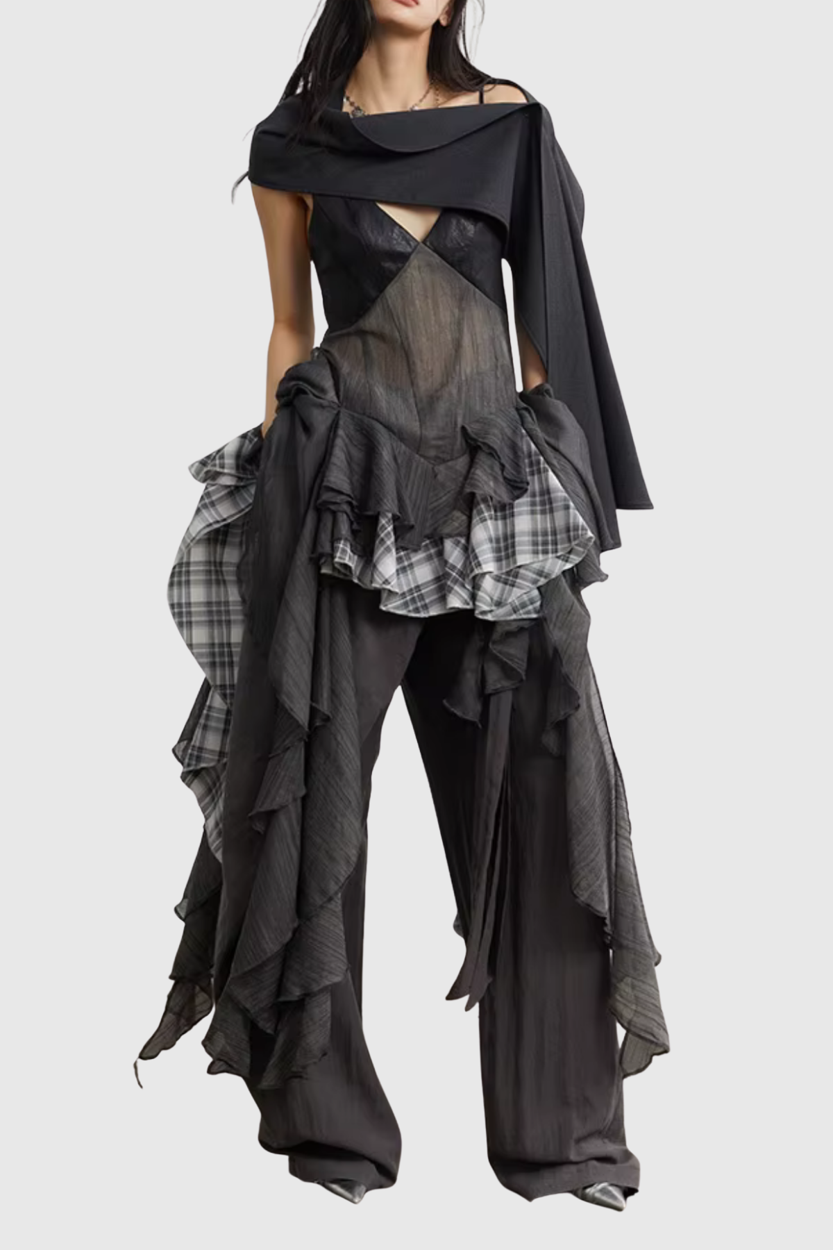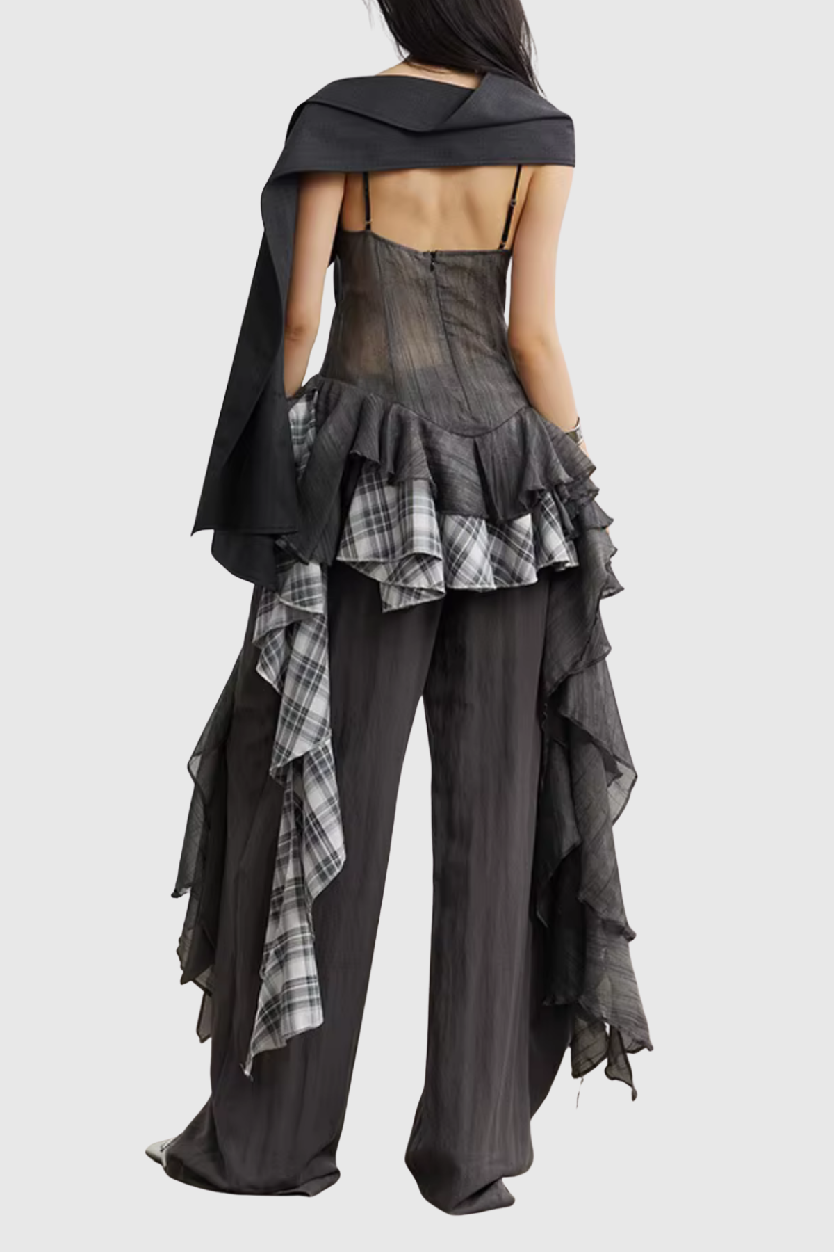 Emmanuelle Mesh Grid Ruffle Top