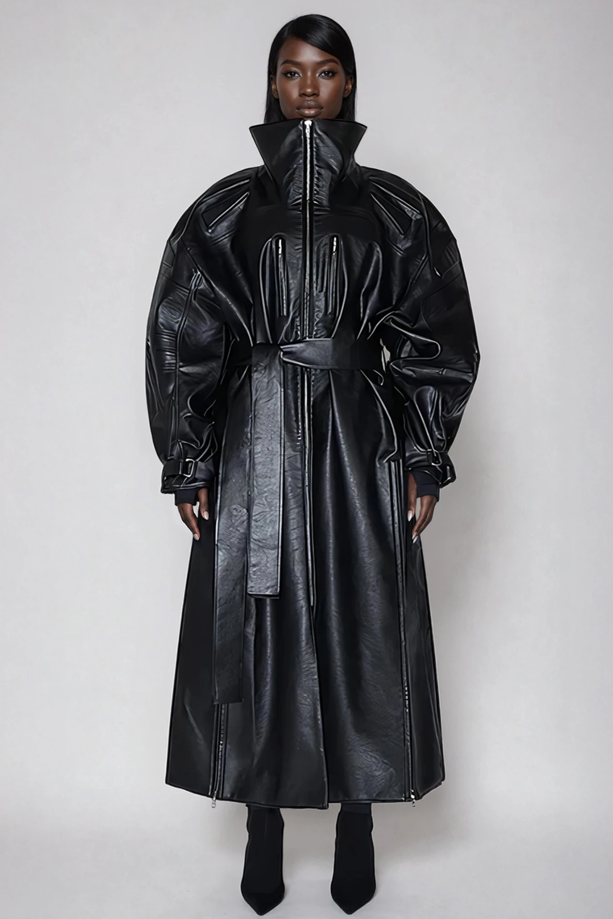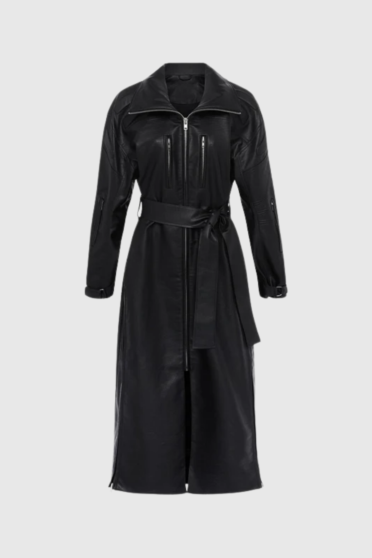 The Emna Leather Coat combines timeless sophistication with contemporary craftsmanship. Constructed from premium leather, this coat delivers exceptional durability while maintaining a refined silhouette that transitions seamlessly from professional settings to casual occasions. The structured design provides a polished appearance, while quality construction ensures longevity through seasons of wear. An investment piece that elevates any wardrobe with understated elegance and versatile styling potential.