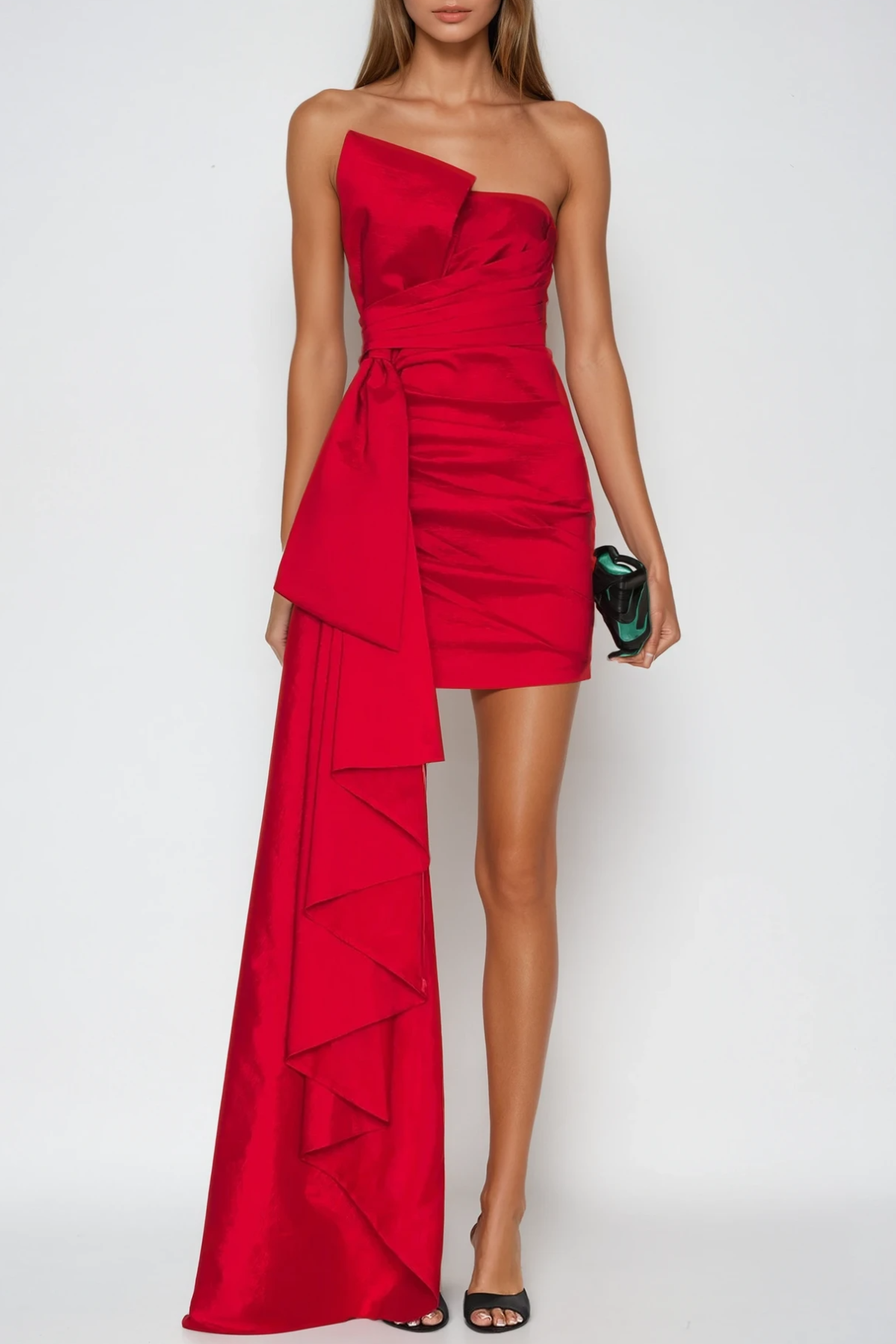 Elevate your evening wardrobe with the Fahima Bow Draped Skirt Mini Dress, a sophisticated piece that seamlessly blends elegance with contemporary design. Featuring a refined bow detail and expertly draped skirt, this mini dress creates a flattering silhouette while maintaining an air of understated luxury. The flowing fabric moves gracefully with every step, making it an ideal choice for cocktail events, dinner dates, or upscale casual occasions. Versatile enough to transition from day to night, simply pair with heels and a clutch for an effortlessly polished look.
