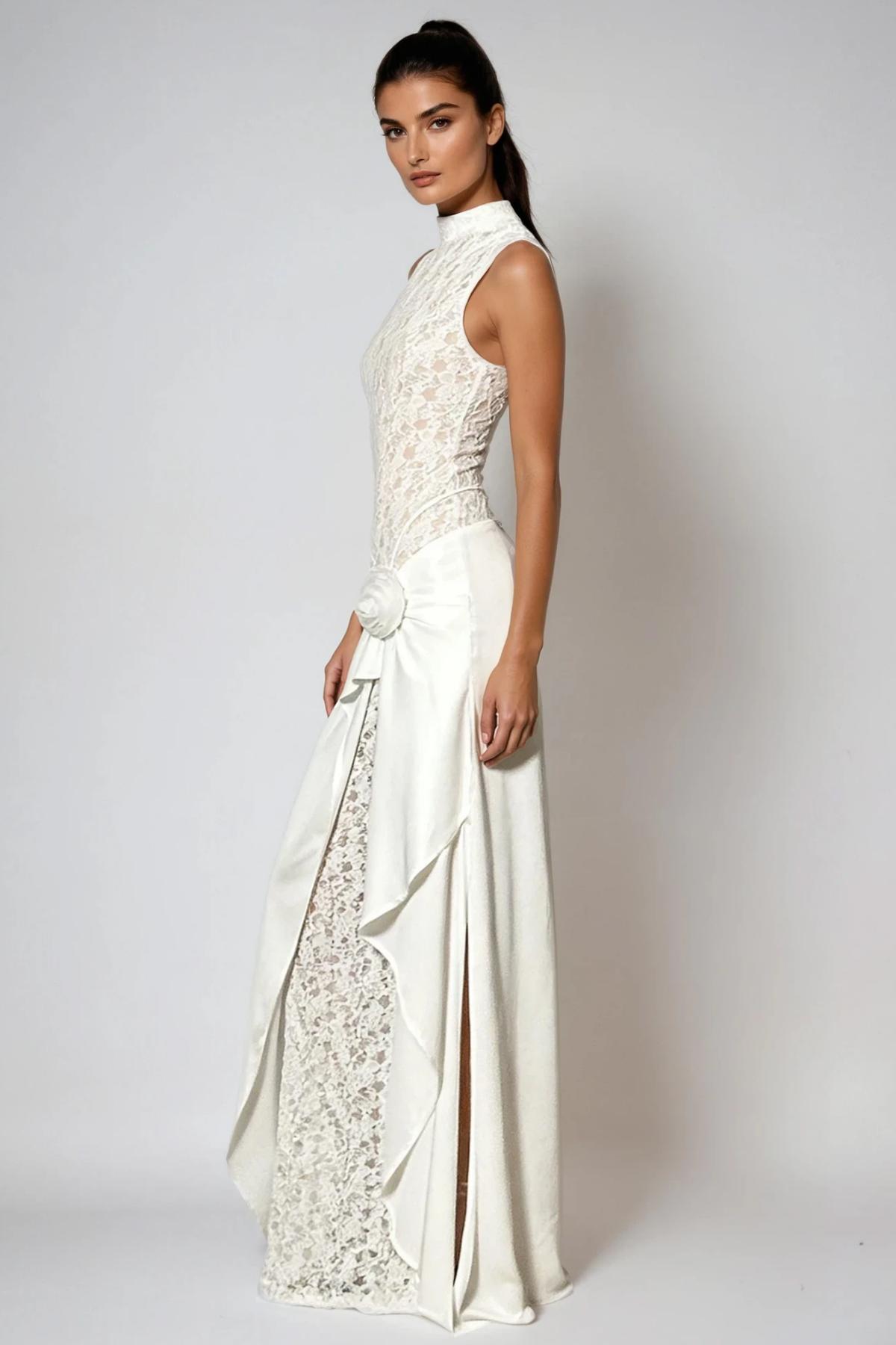 The Fahri Sleeveless Flower Lace Maxi Dress combines timeless elegance with contemporary design. Crafted from delicate flower lace, this sleeveless silhouette drapes gracefully to a full-length hem, creating an effortlessly sophisticated look. The intricate lace detailing provides visual interest while maintaining a refined aesthetic, making it ideal for evening events, weddings, or upscale occasions. The maxi length offers versatility in styling, whether paired with heels for formal affairs or dressed down for semi-formal gatherings. A wardrobe essential that transcends seasonal trends.