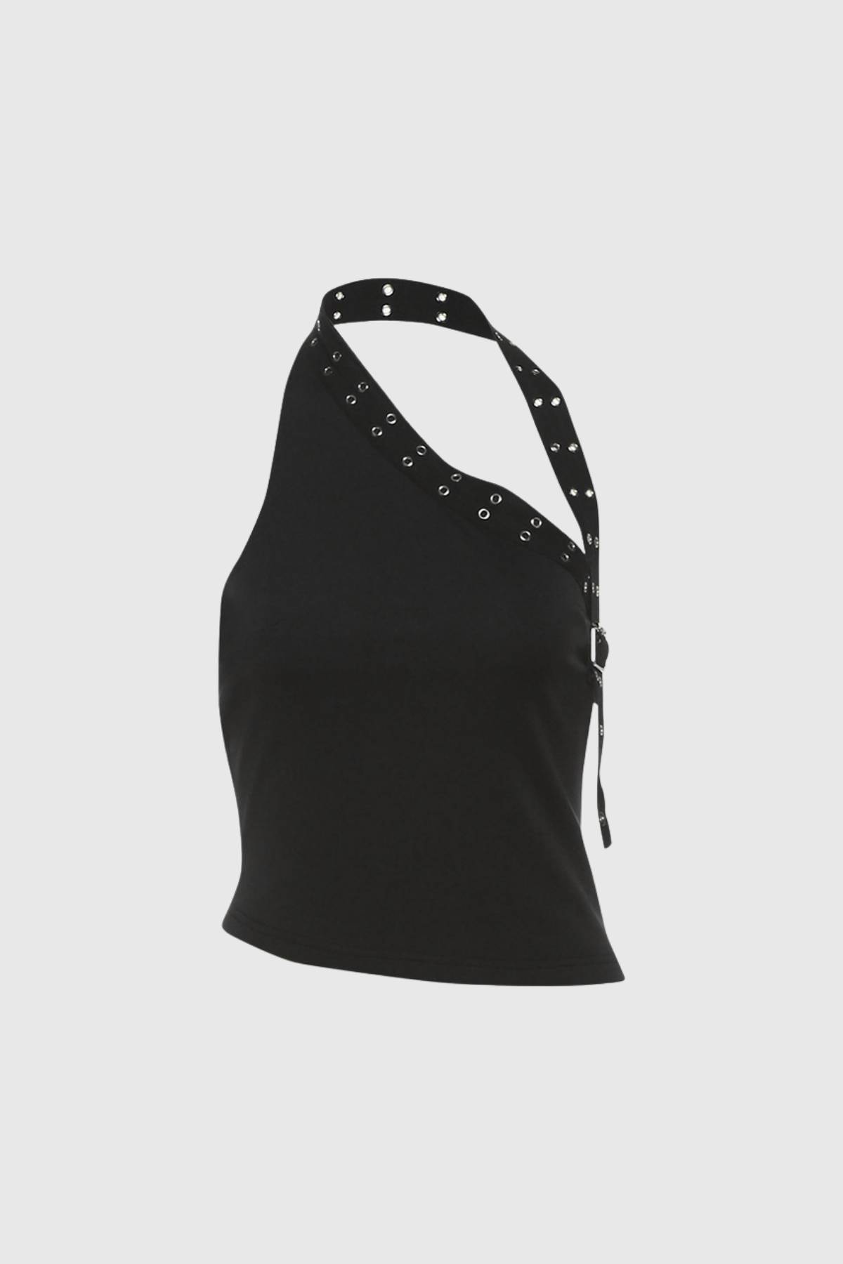 Elevate your wardrobe with this sophisticated two-piece set featuring a halter neck top with delicate eyelet detailing and asymmetric pants. The structured halter design offers refined support and a flattering silhouette, while the eyelet embroidery adds an elegant textural element. The asymmetric cut of the pants creates modern visual interest and a contemporary edge. Perfect for elevated casual occasions or styled up for evening wear, this set delivers versatility with undeniable polish and contemporary design sensibility.