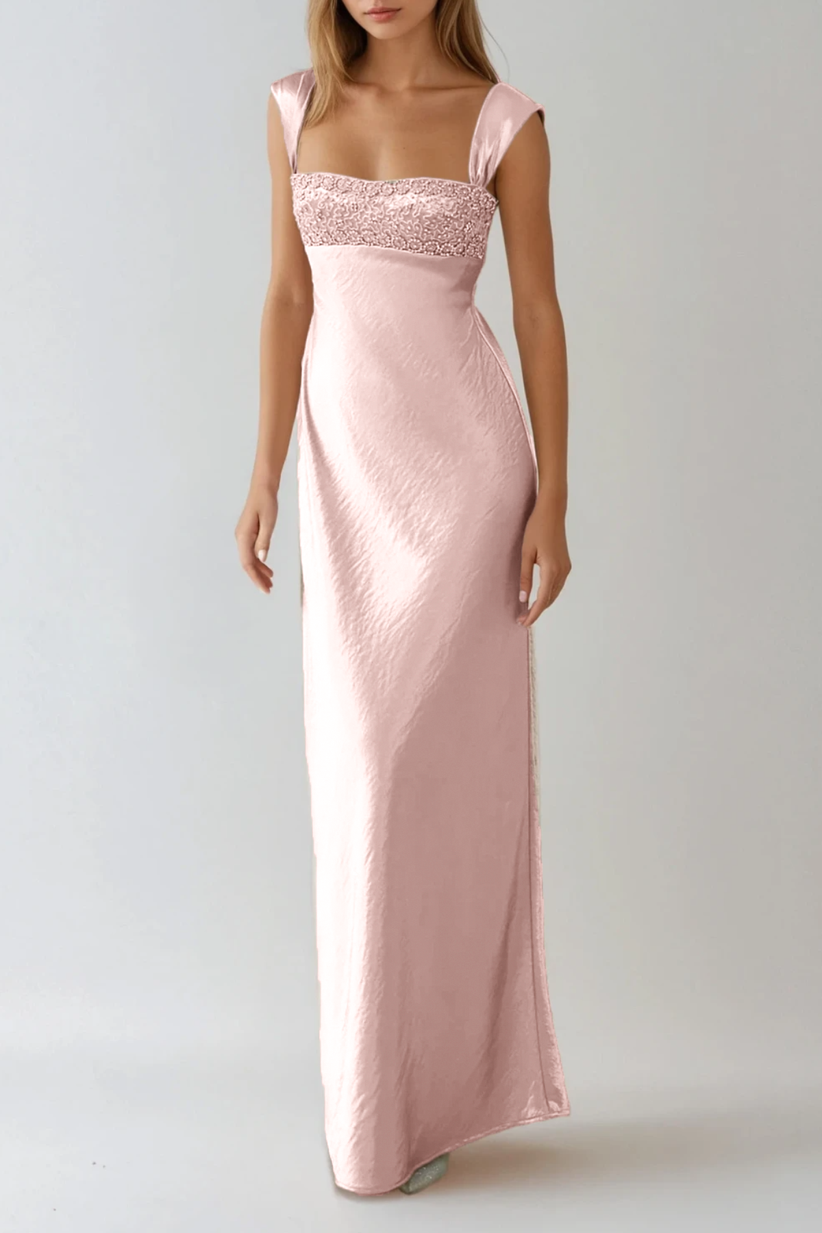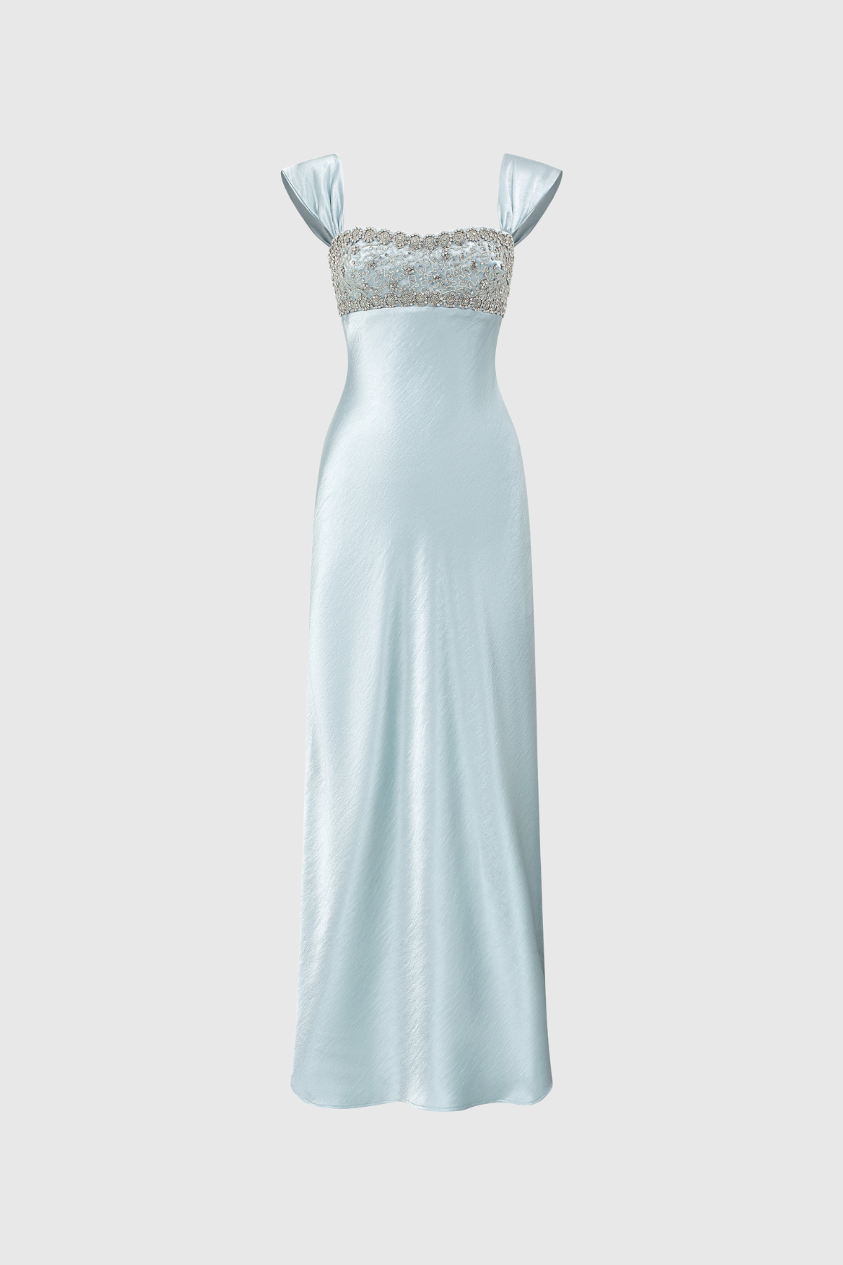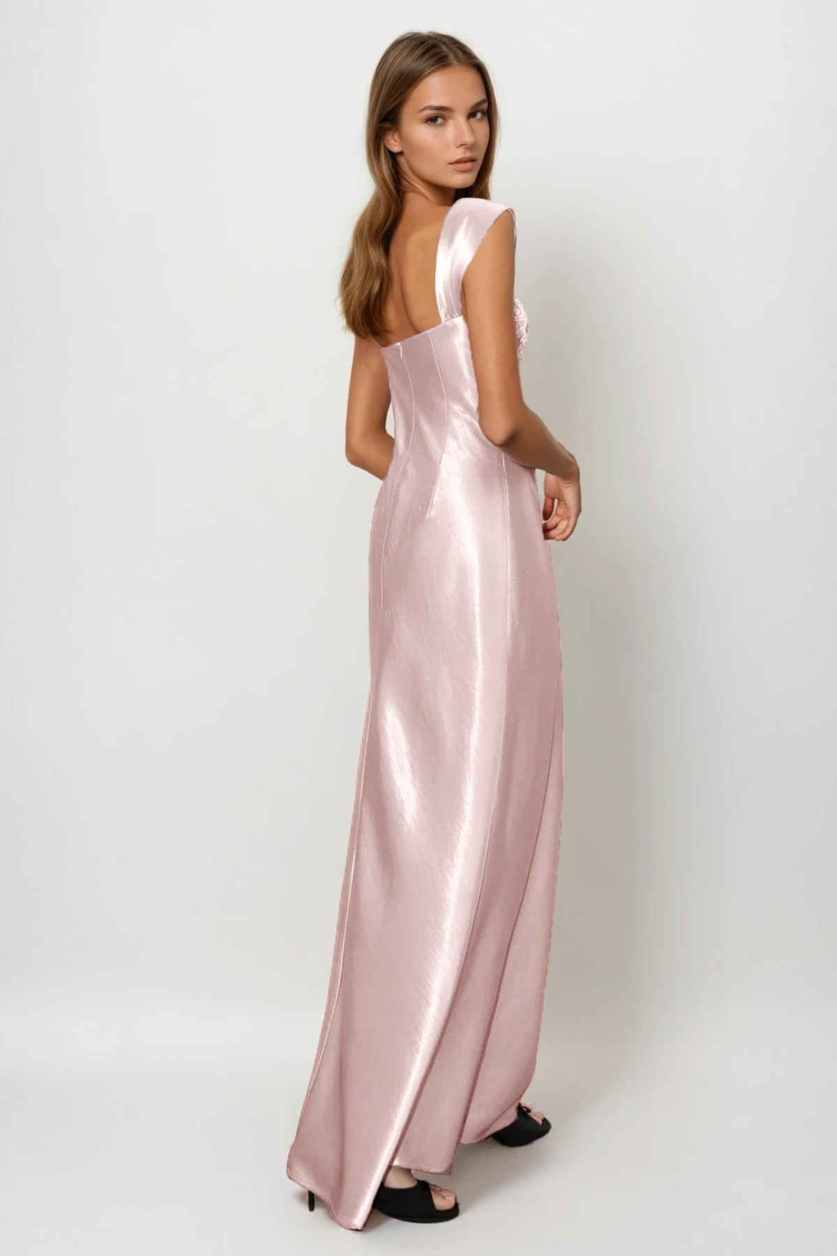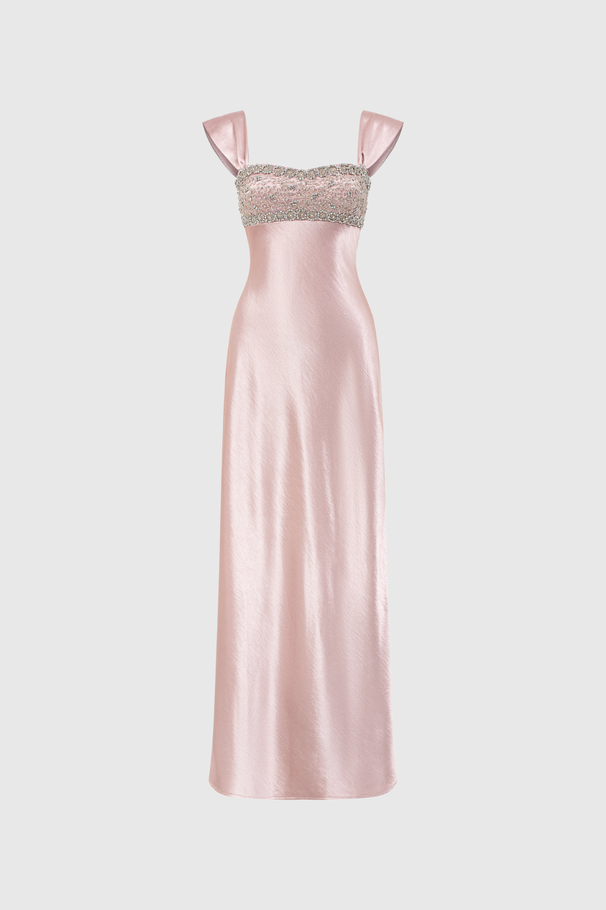 This Fatos sleeveless satin maxi dress combines refined elegance with striking visual appeal. The luxurious satin fabric drapes gracefully to the floor, while strategically placed rhinestone detailing adds sophisticated sparkle without overwhelming the design. The sleeveless cut showcases a modern silhouette that flatters various body types, making it an ideal choice for formal occasions, black-tie events, or upscale celebrations. The dress's fluid construction ensures both comfort and movement, while the premium satin finish delivers a polished, high-end appearance. Perfect for those seeking a statement piece that balances understated luxury with glamorous embellishment.