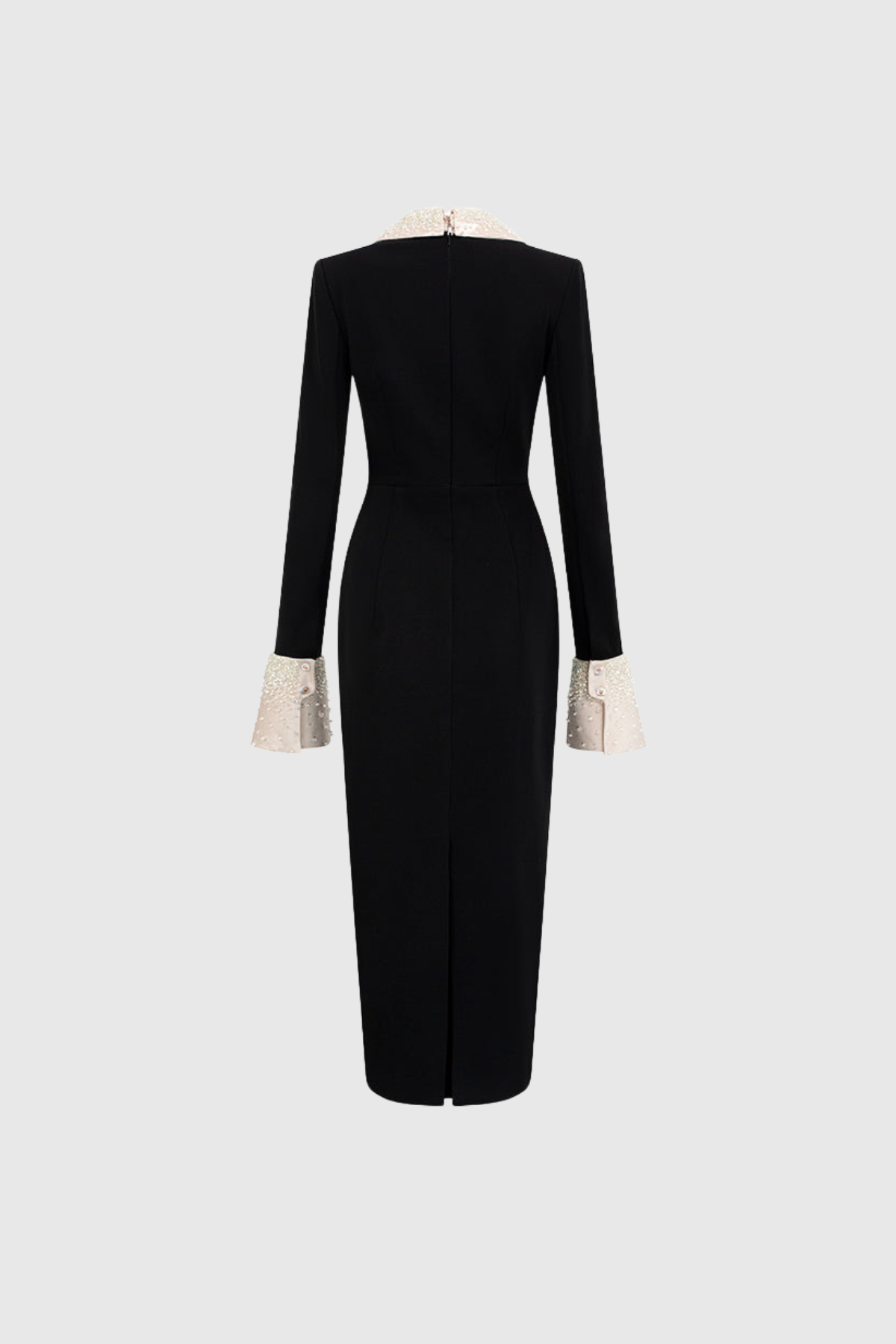 Elevate your evening wardrobe with the Fazel Lapel Rhinestone Midi Dress, a sophisticated piece that seamlessly blends tailored elegance with glamorous embellishment. The structured lapel collar provides a polished silhouette, while strategically placed rhinestones catch the light for understated sparkle. Cut to a flattering midi length, this dress transitions effortlessly from cocktail events to upscale dinners. The refined construction ensures a confident fit that complements various body types, making it an investment piece for those who appreciate timeless style with contemporary flair.