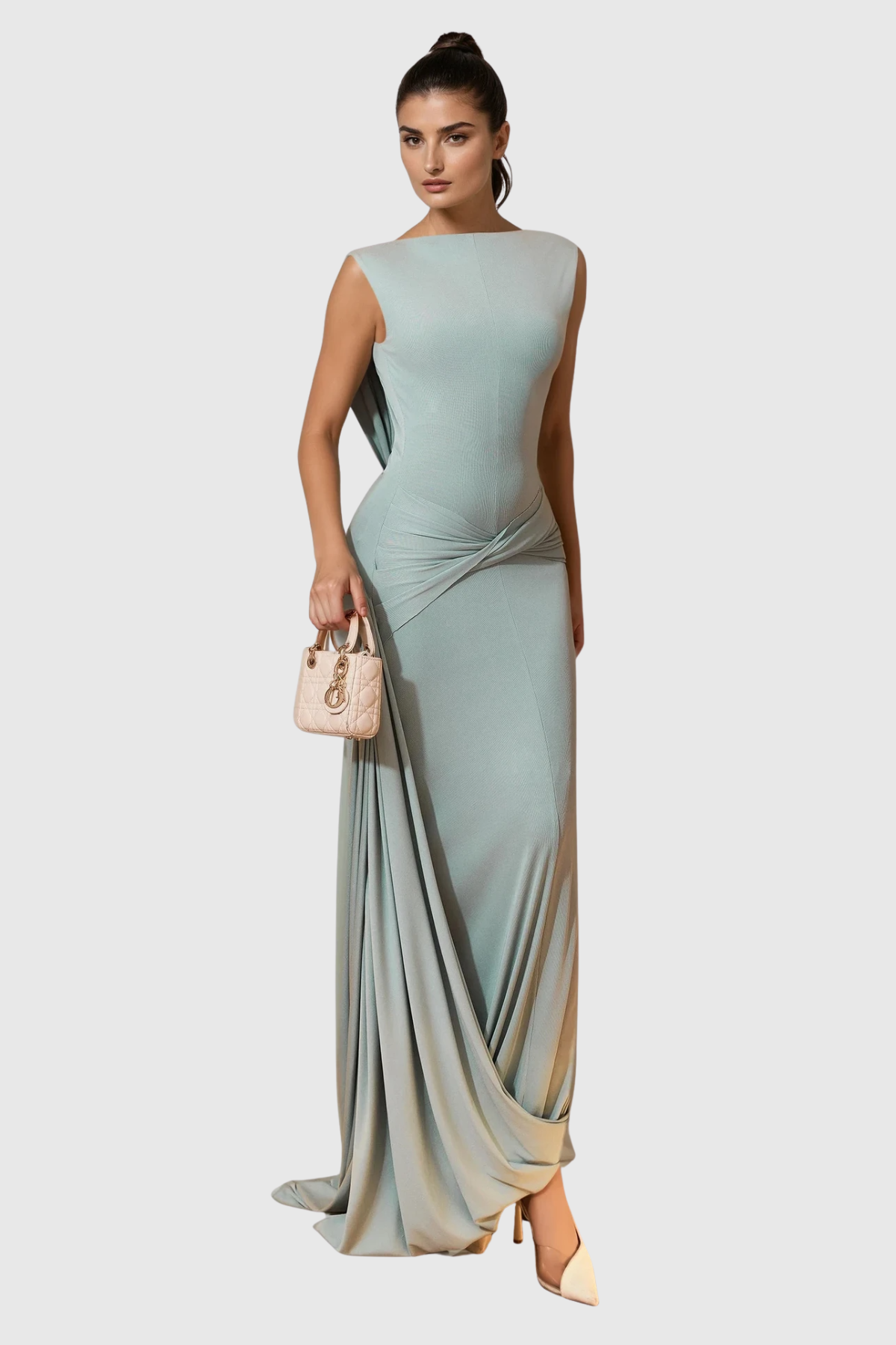 The Fearghal Sleeveless Draped Maxi Dress exemplifies contemporary elegance through its architectural silhouette and refined construction. The strategically placed draping creates fluid movement while maintaining a structured aesthetic, making it equally suited for evening events or sophisticated daytime occasions. The sleeveless design offers versatility for layering or standalone wear across seasons. Crafted with attention to detail, this maxi dress delivers a polished, fashion-forward look that transcends seasonal trends.