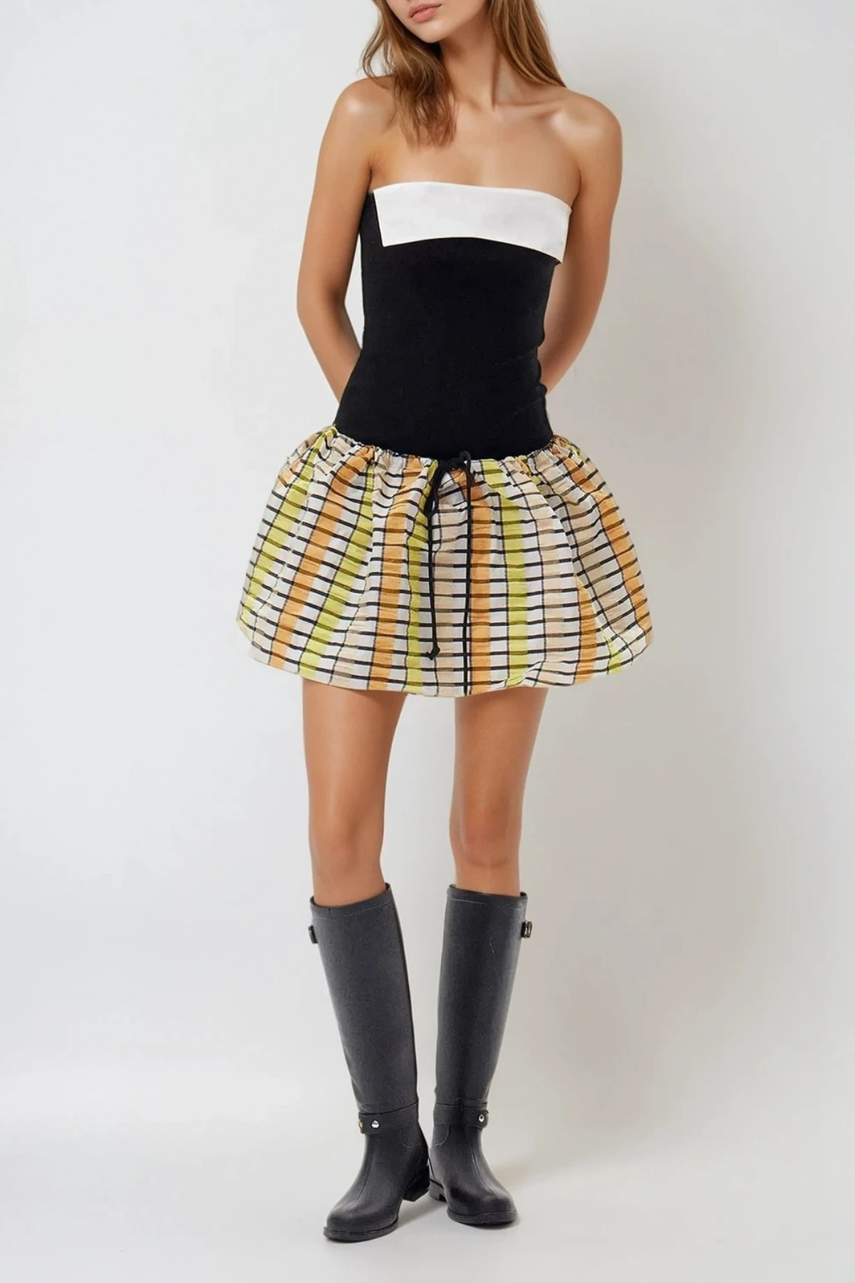 Fedelm's deconstructed grid mini dress redefines contemporary silhouettes through architectural precision. The fragmented grid pattern creates visual movement while the mini length offers modern versatility. Crafted with attention to structural detail, this piece balances avant-garde design with wearable sophistication. Perfect for those seeking statement pieces that challenge conventional fashion boundaries while maintaining refined elegance.
