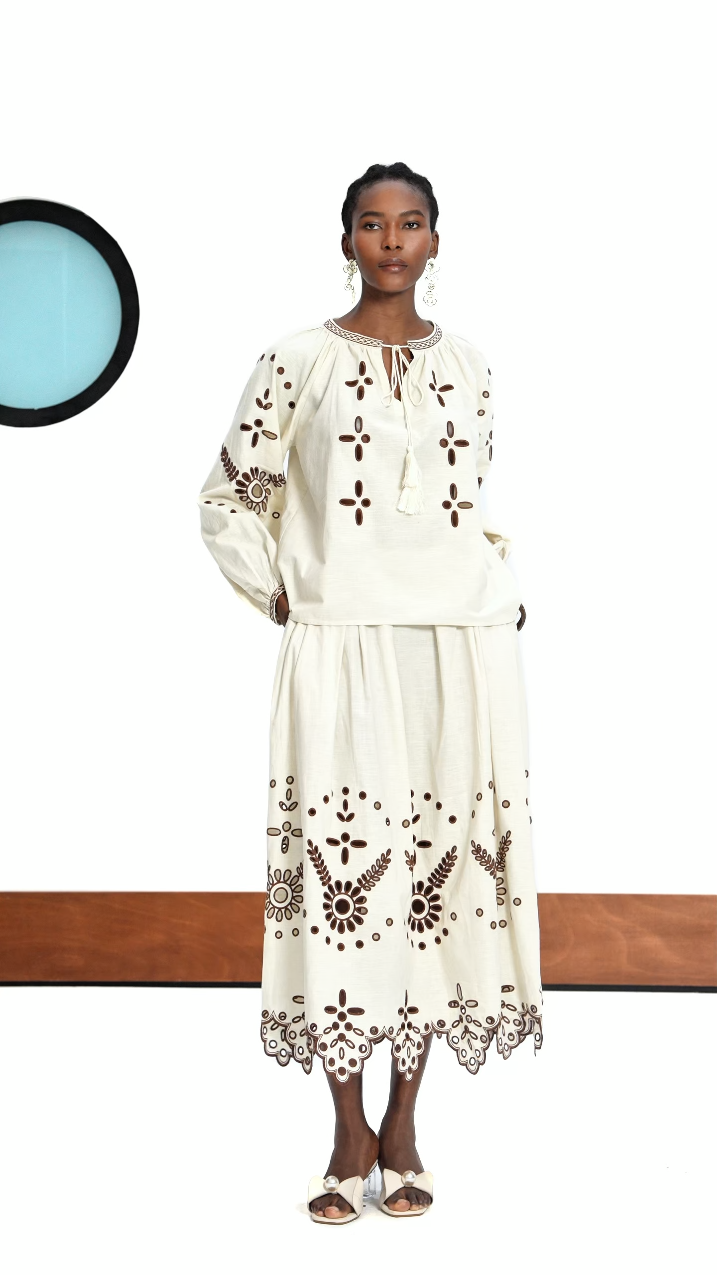 Gabby Balloon Sleeve Embroidered Skirt Set