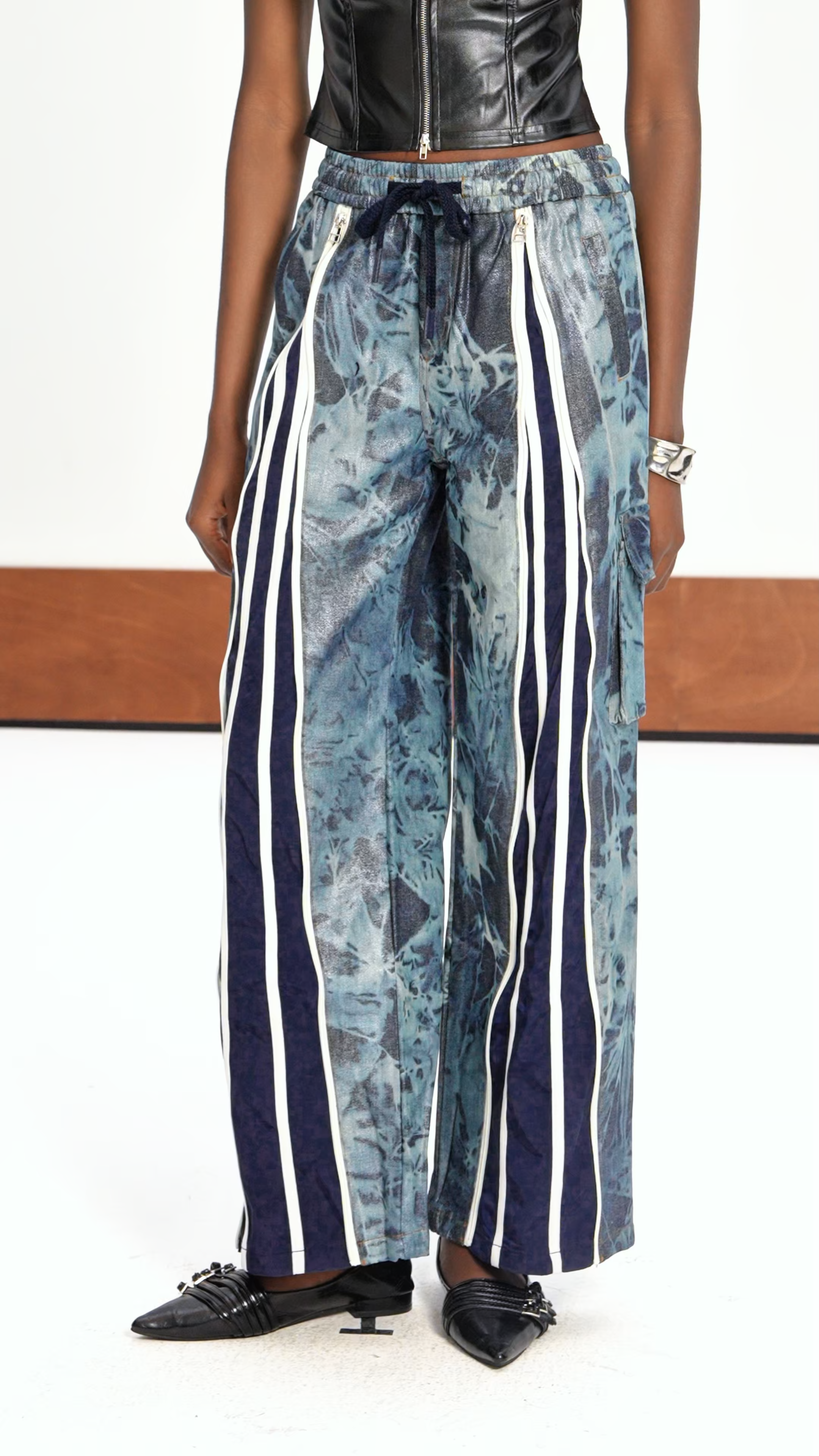 Elevate your wardrobe with Gaea Stripe Print Pants, featuring a modern striped pattern and tailored fit. Crafted for comfort and style, these versatile pants transition seamlessly from office settings to casual outings. Perfect for the fashion-forward professional.