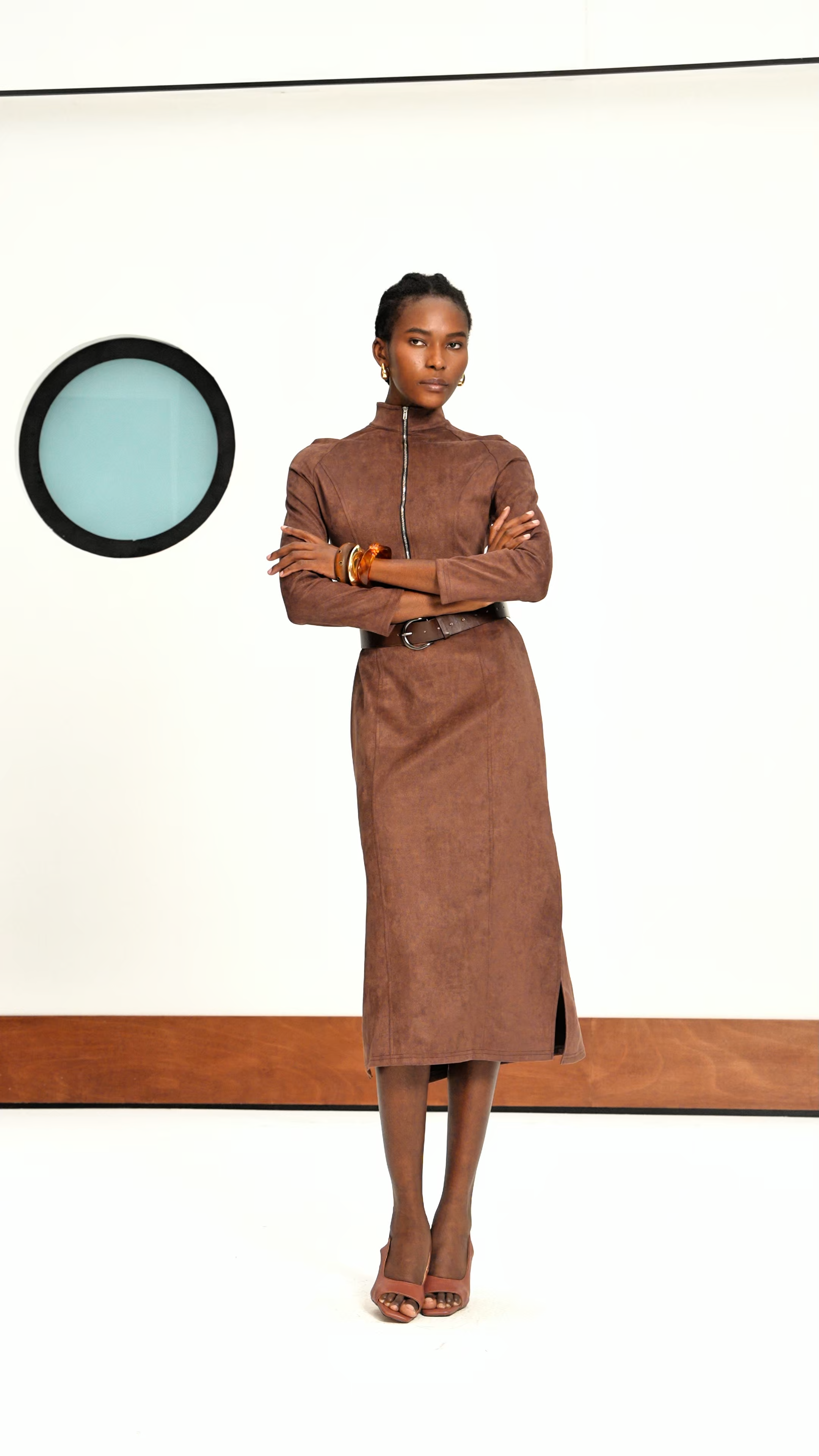 Galya Suede Zipper Midi Dress