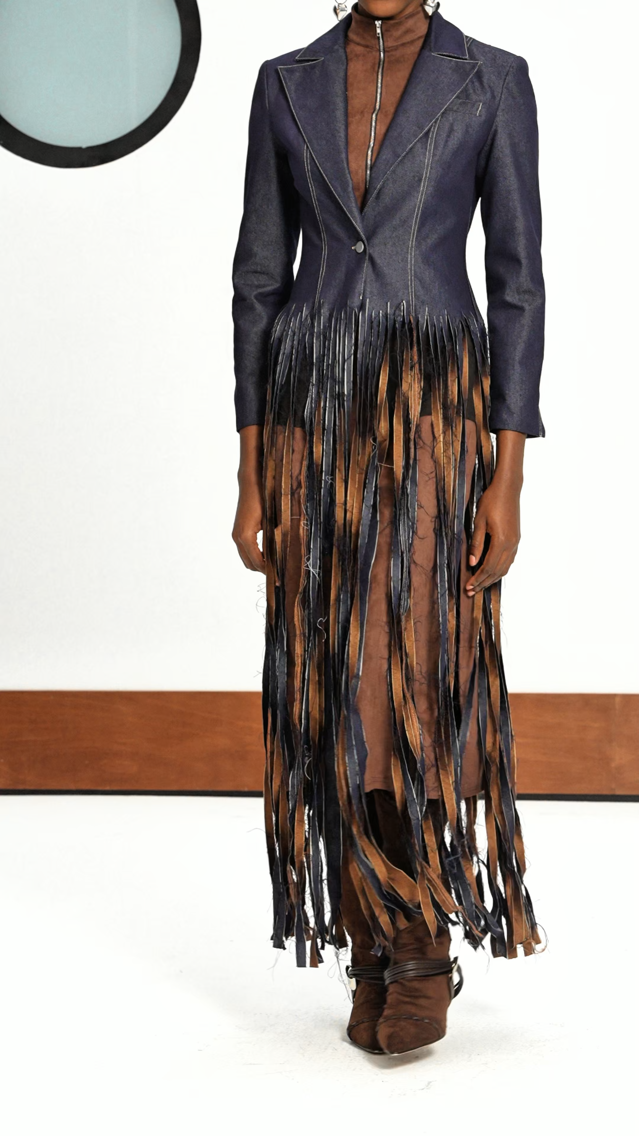 The Garibald Fringe Deconstruct Jacket pushes boundaries with its avant-garde design and edgy aesthetic. Featuring strategically placed fringe detailing and deconstructed elements, this jacket makes a bold fashion statement while maintaining wearability. The structured silhouette provides a flattering fit, while the textured fringe adds movement and dimension to any outfit. Versatile enough to layer over casual basics or dress up with evening wear, this piece elevates your wardrobe with contemporary edge. Perfect for those seeking to express individuality through fashion-forward styling.