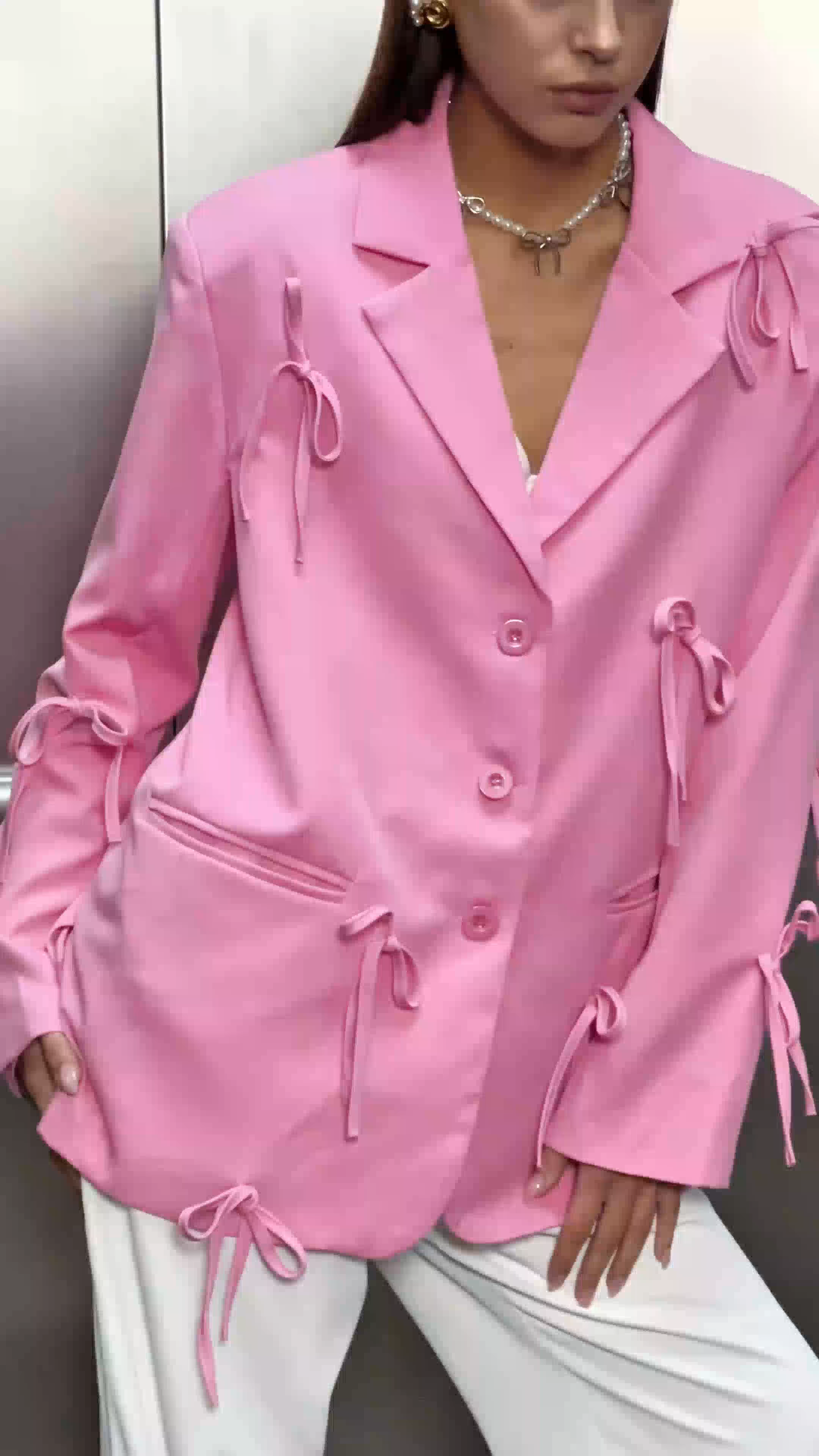 Upgrade your professional wardrobe with the Hiya Bow Lapel Blazer. Made with high-quality materials, this blazer features a stylish bow lapel that adds a touch of sophistication to any outfit. Perfect for meetings, presentations, or interviews, the Hiya Bow Lapel Blazer is a must-have for any business attire.