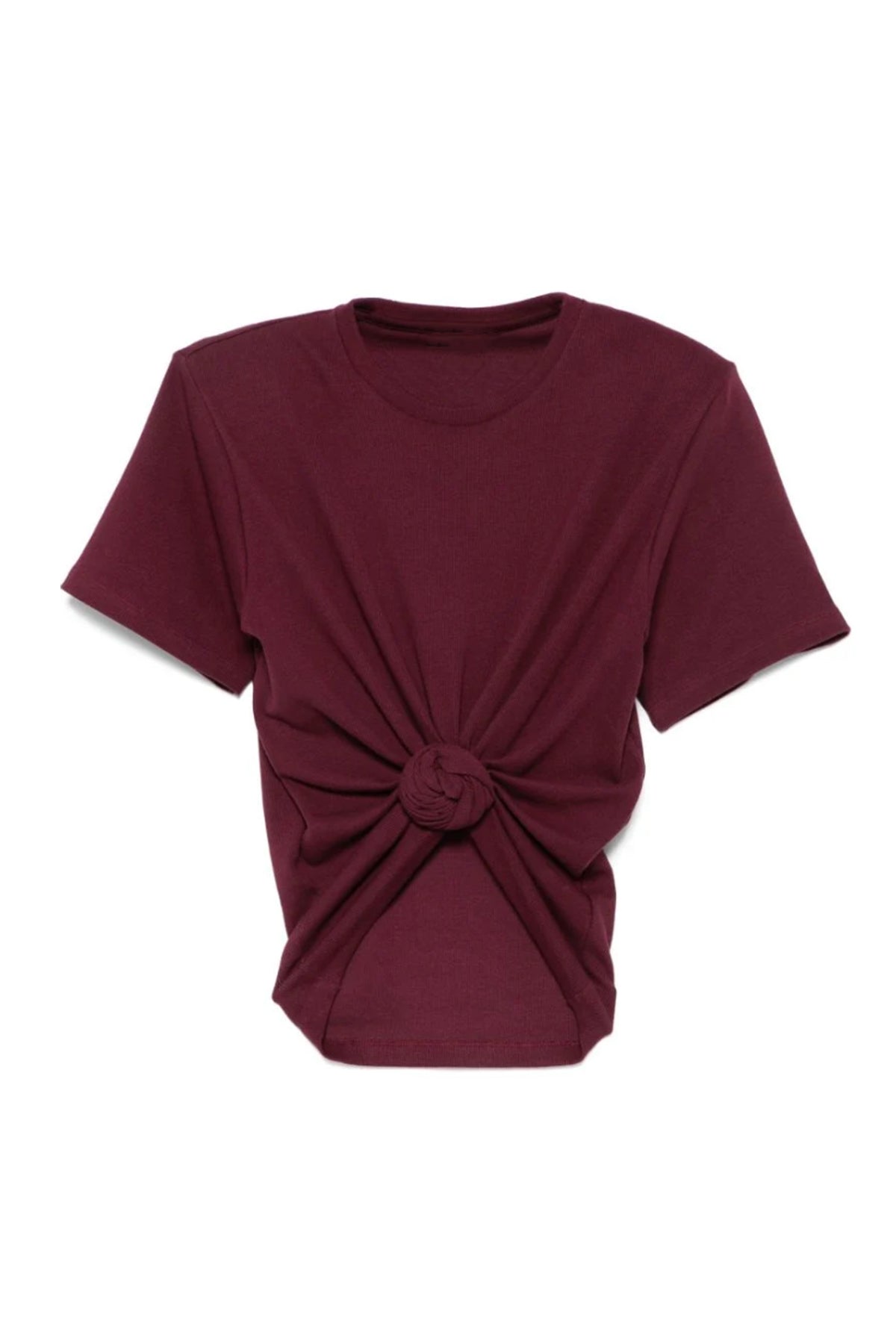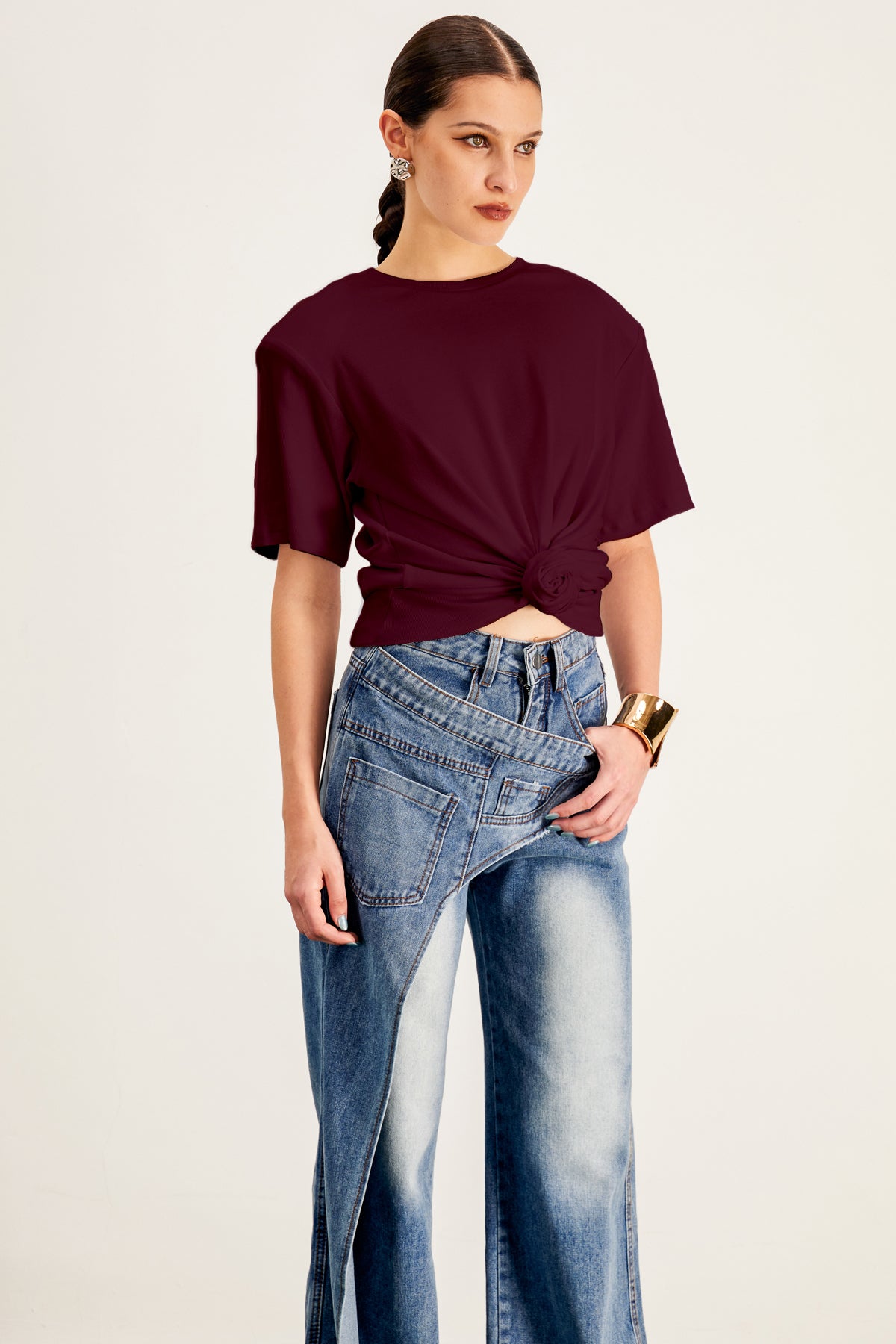 Crafted with style and comfort in mind, the Jemma Ruch Twist T Shirt is an essential addition to any wardrobe. Its unique ruched twist design adds a touch of femininity to this classic red t-shirt, perfect for any occasion. Made with quality materials, you'll love the look and feel of this top.