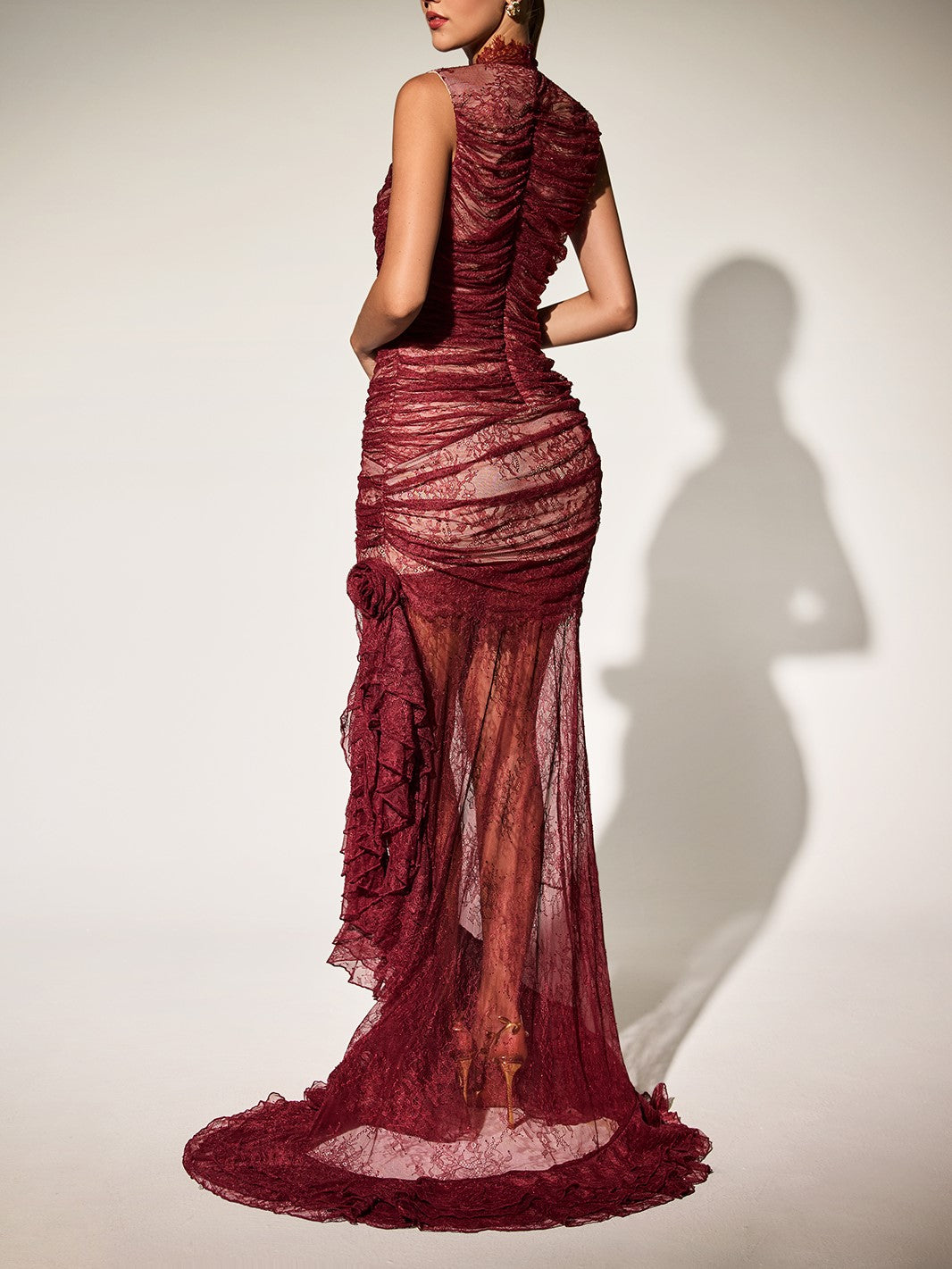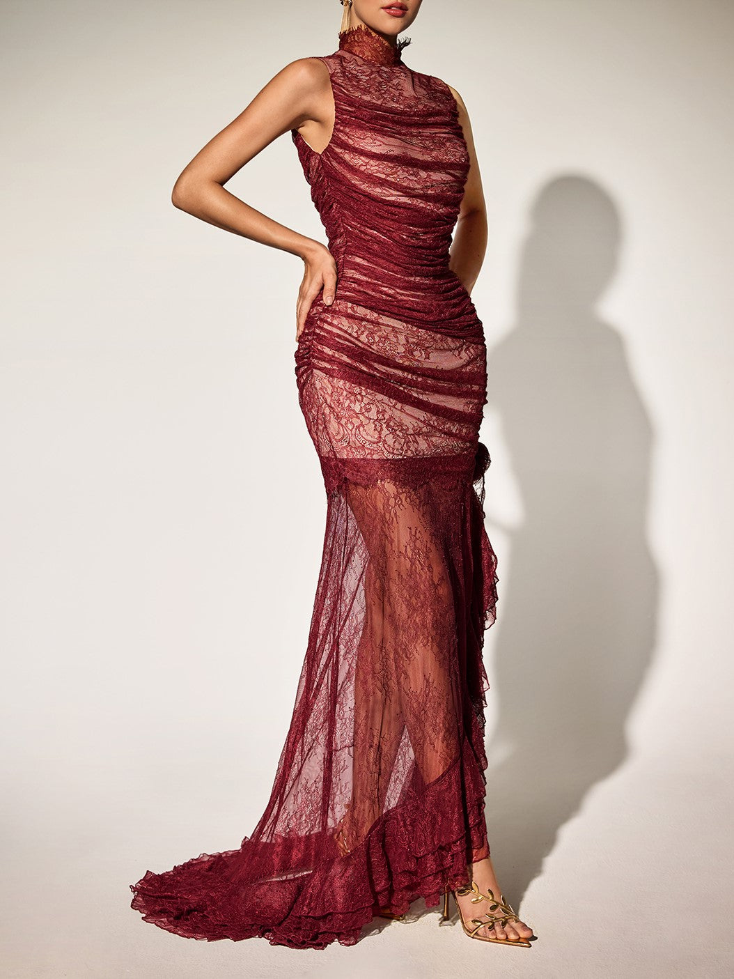 Elevate your evening wardrobe with the Kaldris High Neck Ruch Lace Maxi Dress, a sophisticated piece that seamlessly blends timeless elegance with contemporary design. The delicate lace fabrication creates an ethereal aesthetic, while the high neckline provides refined coverage and structure. Strategic ruching through the bodice flatters the silhouette and adds dimensional interest. The flowing maxi length offers graceful movement and versatility for formal events, upscale dinners, or special occasions. This dress demonstrates expert craftsmanship in both construction and fabric selection, making it a standout addition to any refined collection.