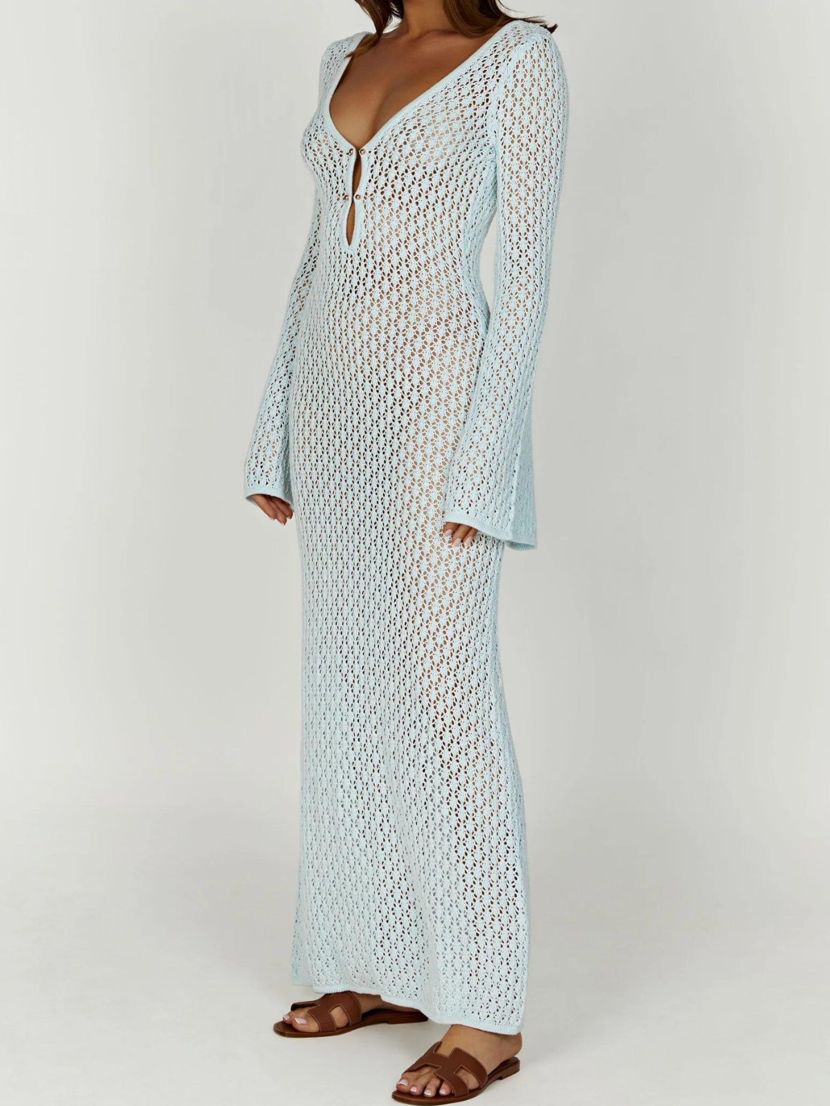 Lana Knit Cutout Plunge Maxi Dress In Blue