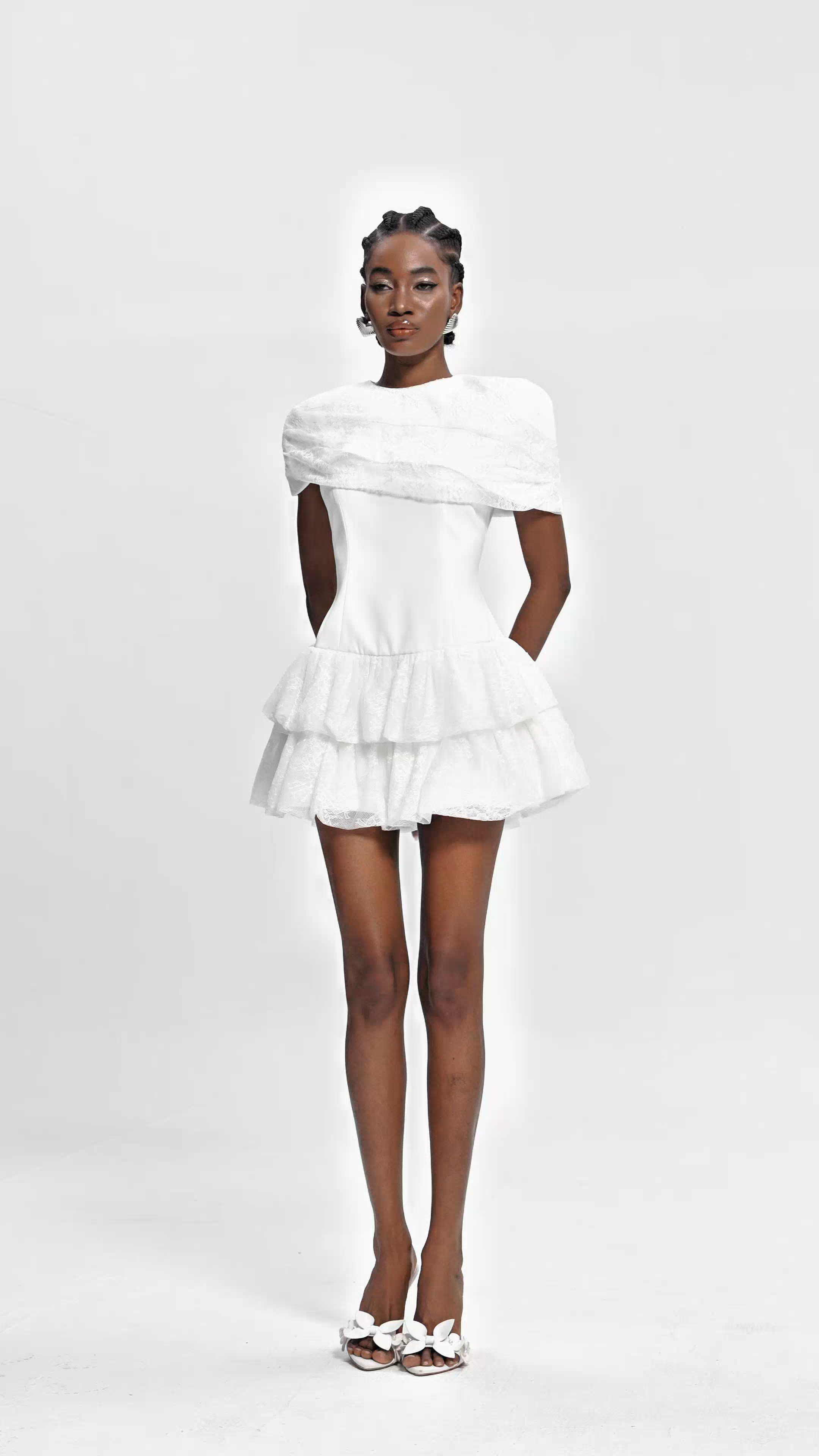 The Pexelle Shawl Ruffle Lace Mini Dress offers a sophisticated blend of delicate lace and elegant ruffle detailing. Designed with a shawl collar, it adds a refined touch that enhances its feminine silhouette. Perfect for occasions requiring a polished yet playful look, this mini dress combines intricate craftsmanship with a flattering cut to highlight your style with confidence.