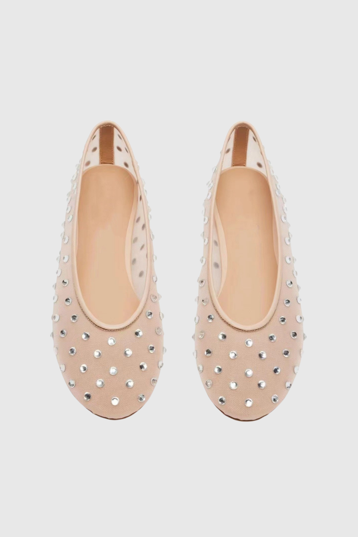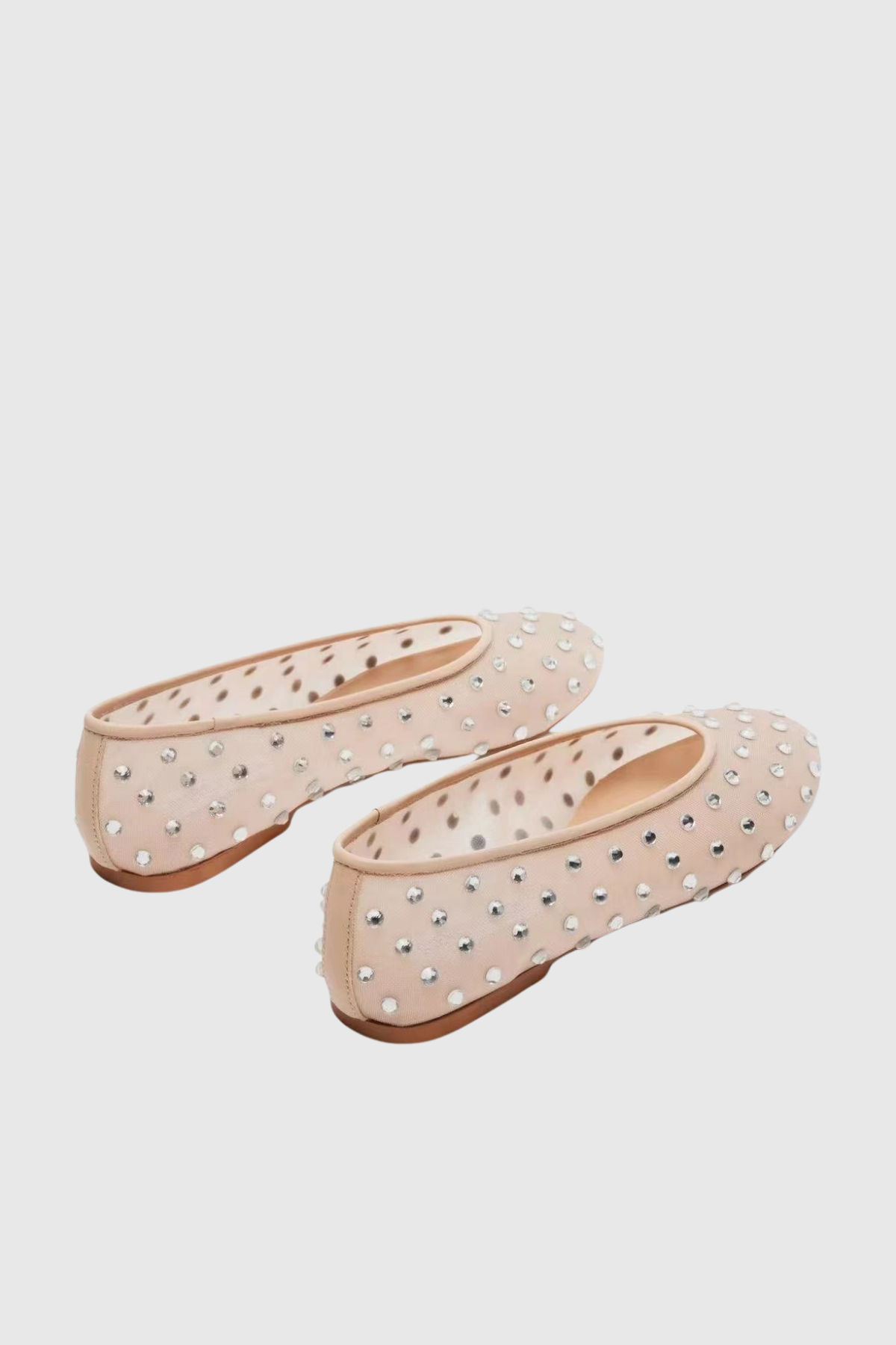 Indulge in the luxurious elegance of our Rosa Flats! Adorned with sparkling rhinestones on a delicate mesh material, these flats add a touch of glamour to any outfit. With a soft apricot hue, they are perfect for any occasion. Step into style with the Rosa Flats!