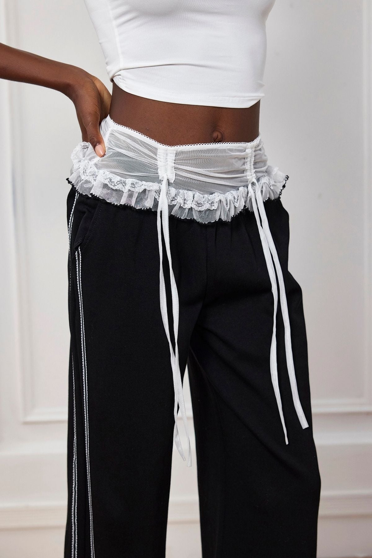 Experience the perfect blend of style and comfort with our Sariah Lace Bow Pants. Made with high-quality materials and delicate lace detailing, these pants offer a unique and elegant look. The patchwork design adds a touch of creativity, making these pants a must-have for any fashion-forward wardrobe.