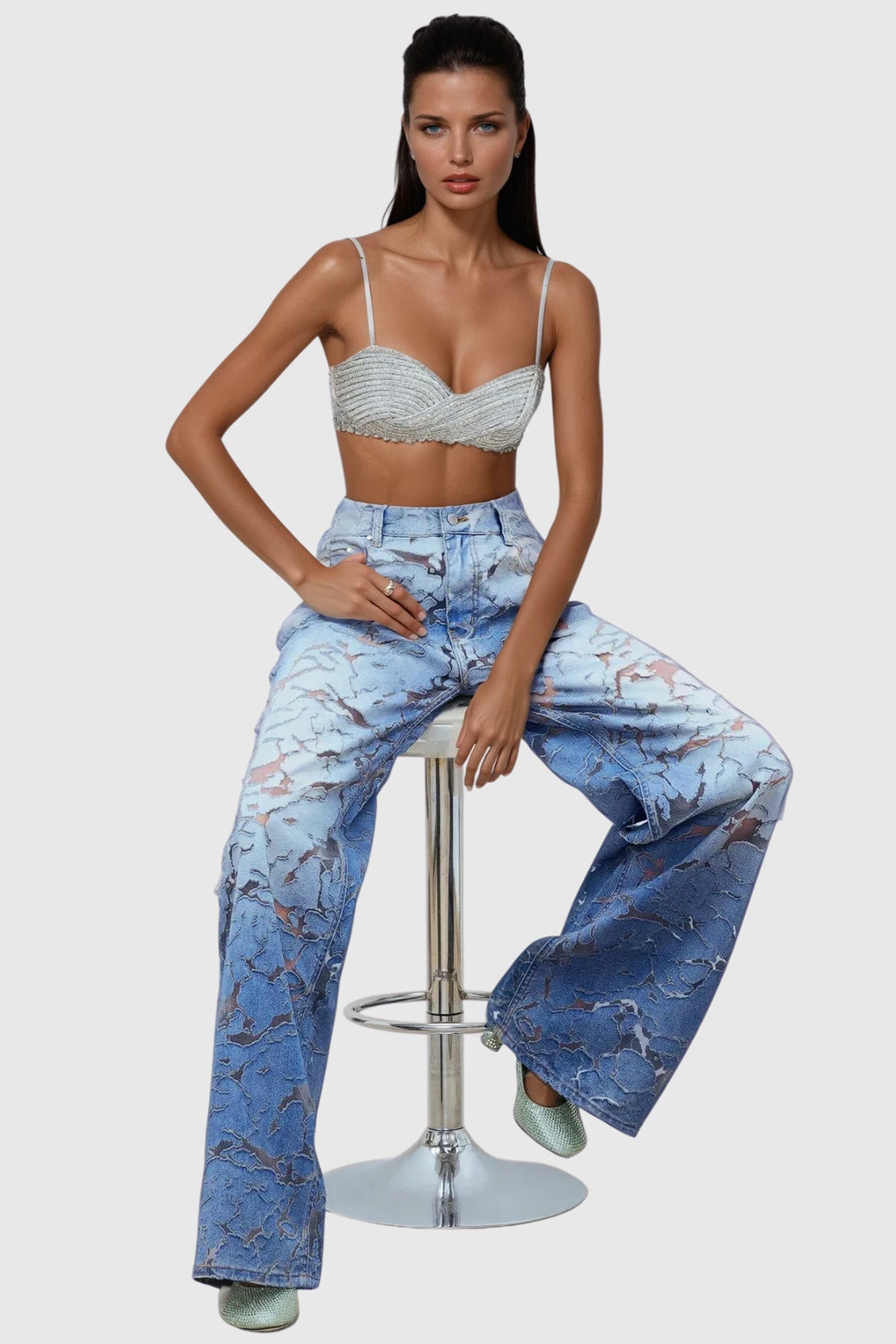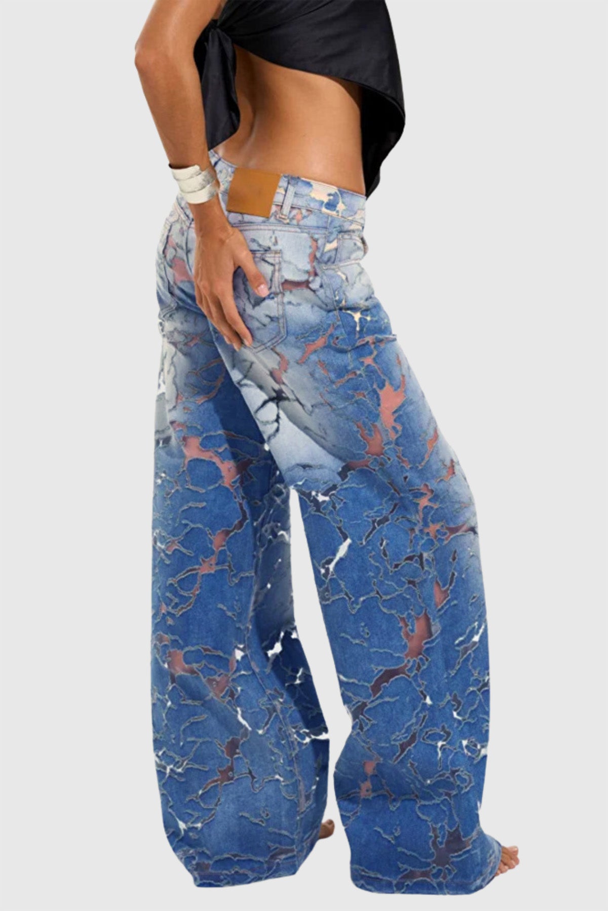Zaida Deconstructed Cutout Jeans combine avant-garde design with premium craftsmanship. Featuring strategically placed cutouts and a deconstructed silhouette, these jeans offer a bold, fashion-forward look while maintaining comfort and durability. Crafted from high-quality denim, they provide a unique blend of edgy style and everyday wearability, perfect for those seeking to make a confident statement in contemporary streetwear.