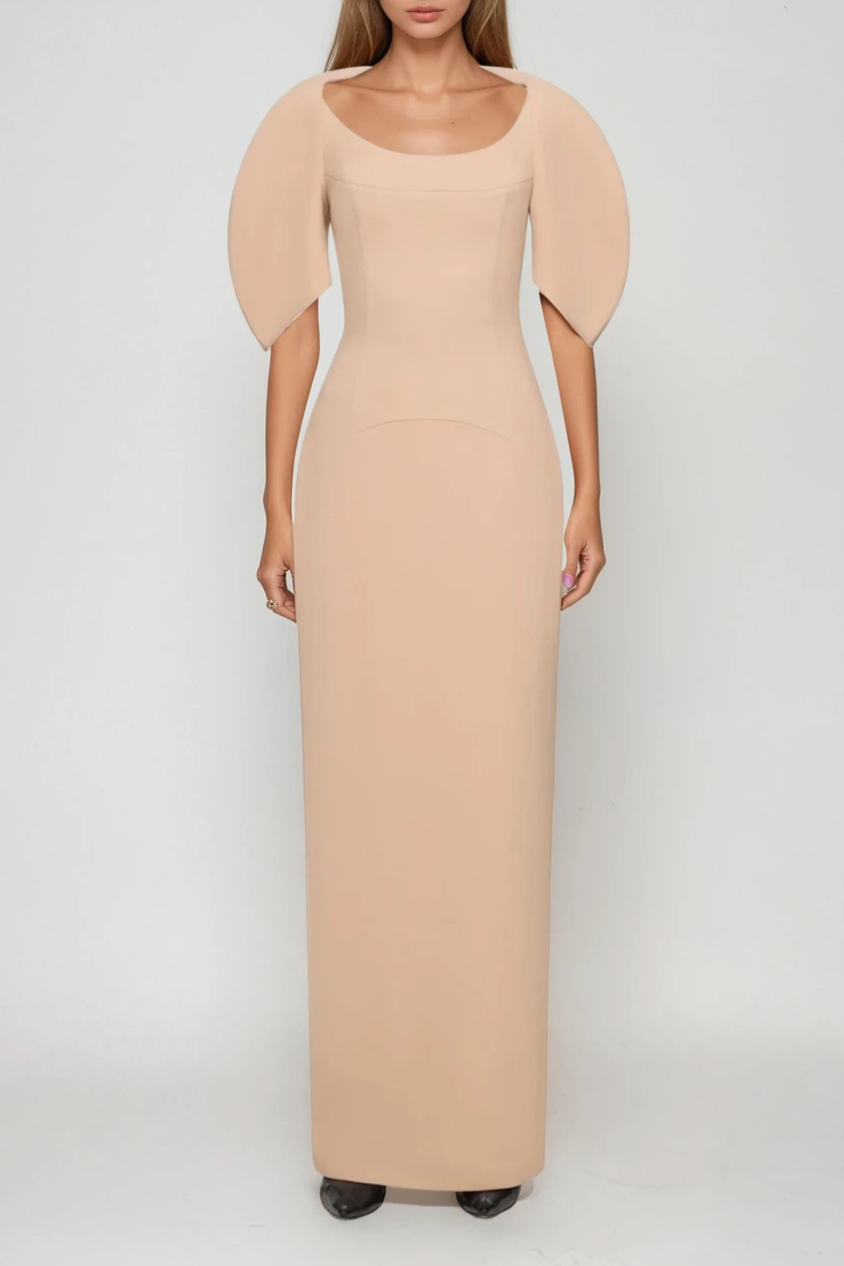 Alter Rhinestone Cutout Ruch Maxi Dress In Apricot
