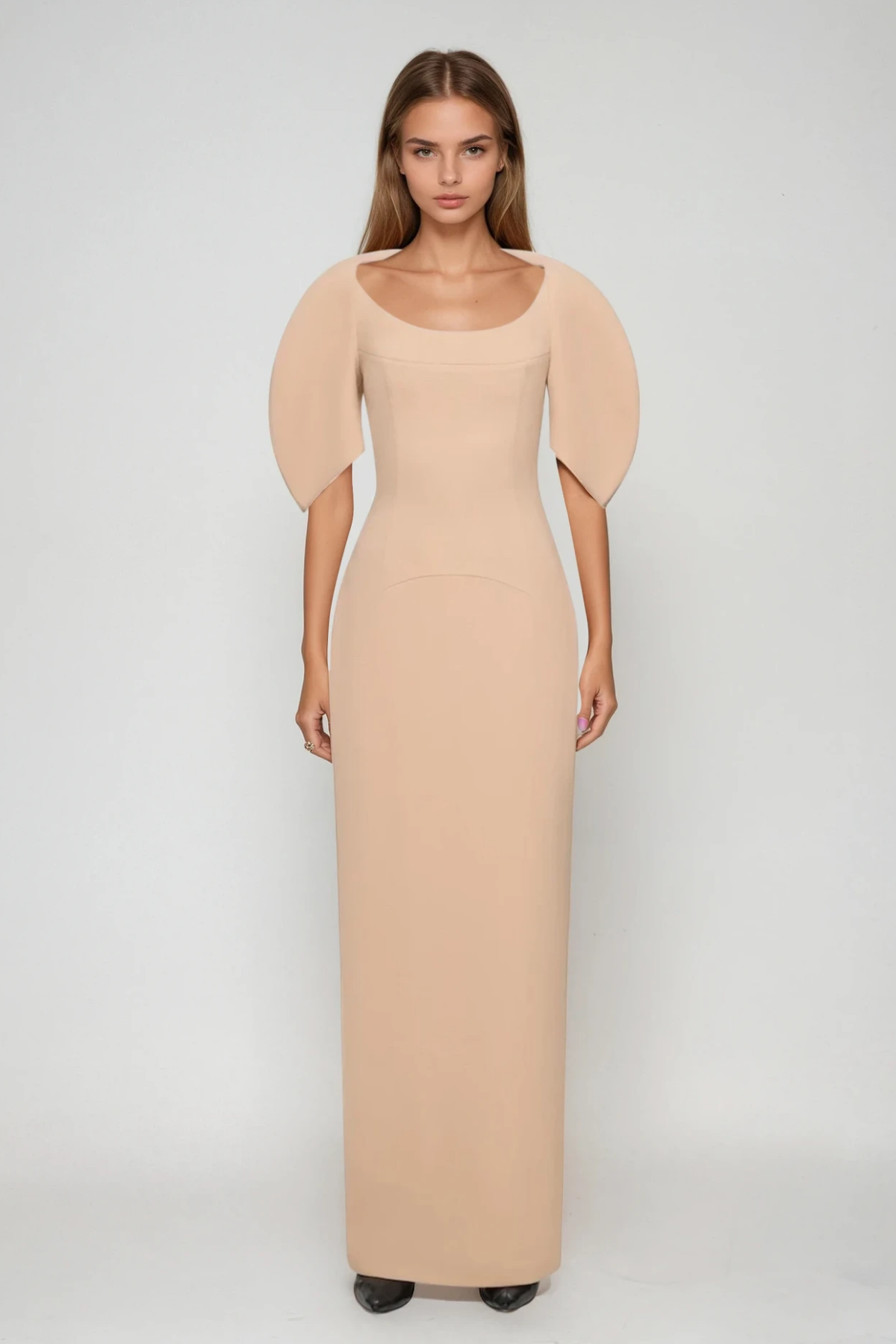 Fahd Puff Sleeve Maxi Dress In Apricot