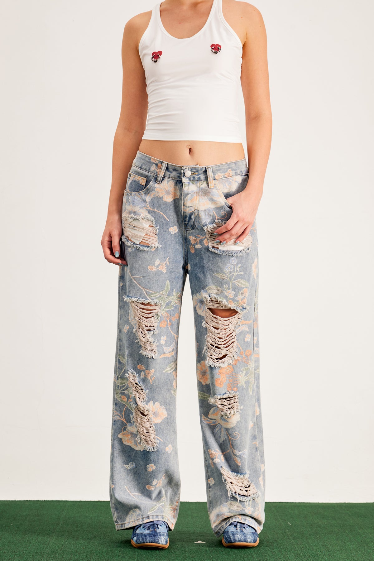 Bistra Tie Dye Ripped Straight Jeans In Blue