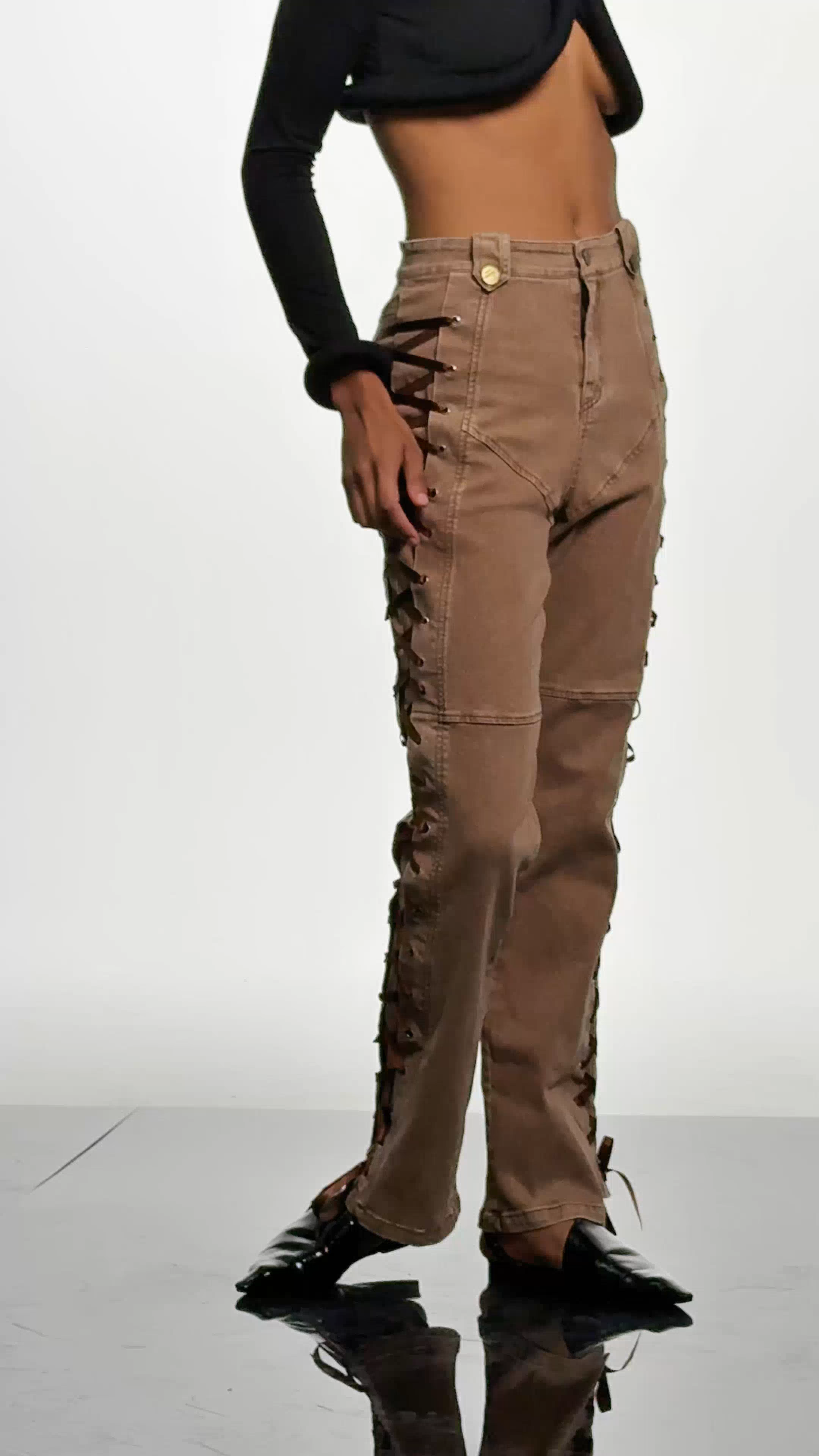 Adriano Lace Up Jeans In Khaki