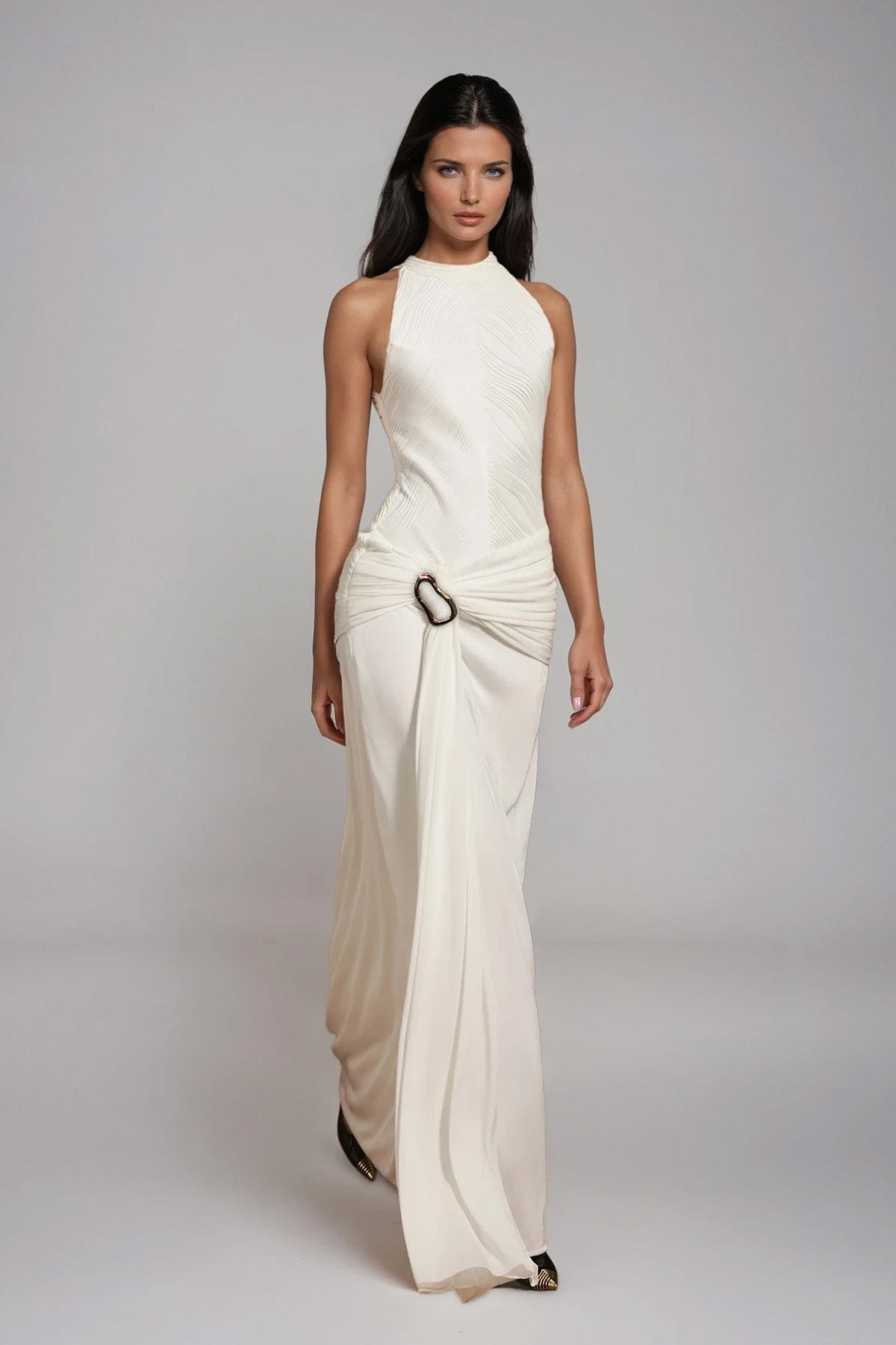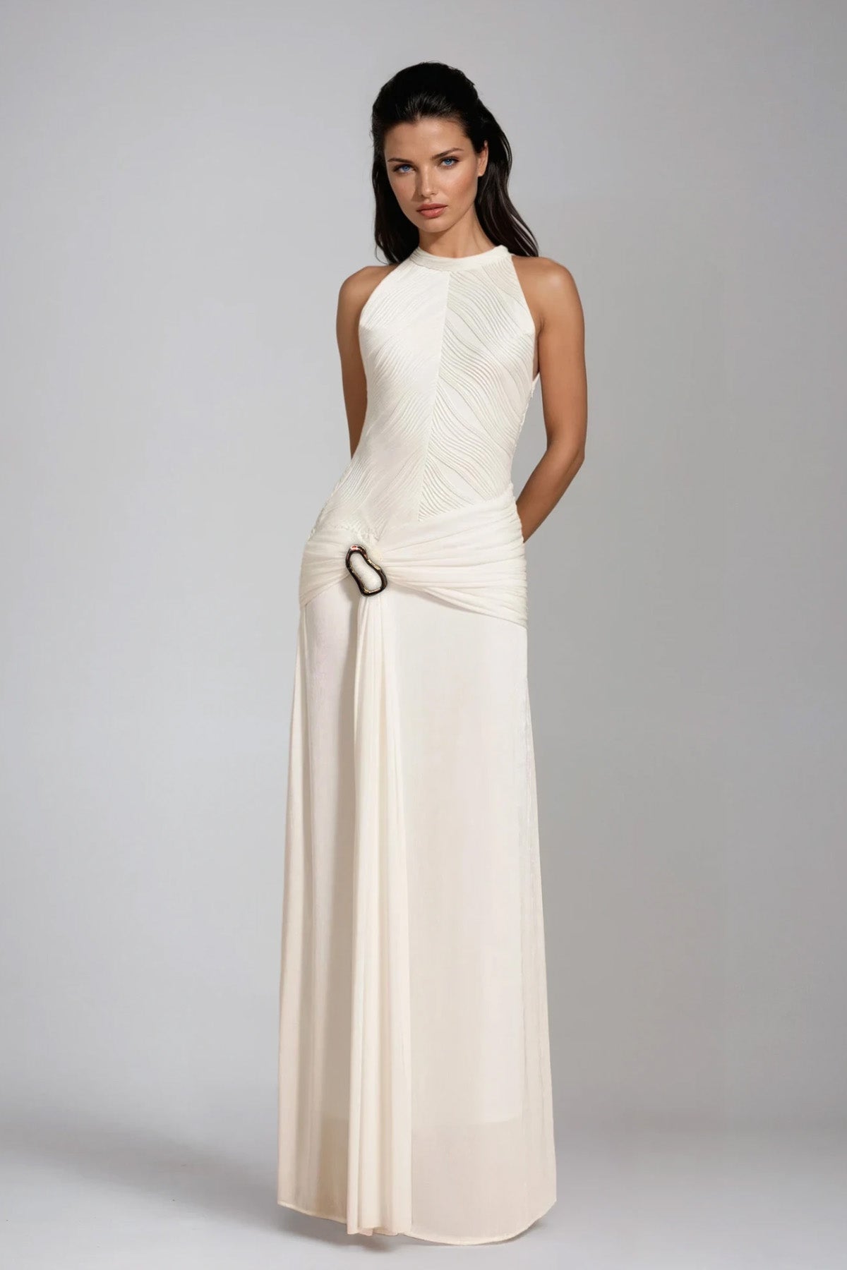Djene Ruch Fringe Maxi Dress Elevate your evening wardrobe with this sophisticated maxi dress, featuring strategic ruching that flatters the silhouette and creates dimensional movement. The delicate fringe detailing adds texture and visual interest, while the floor-length cut delivers timeless elegance. Perfect for formal events, galas, or upscale occasions, this piece combines refined construction with contemporary styling. The ruched elements provide subtle shaping, while the fringe accents catch light beautifully as you move. A versatile investment piece that transitions seamlessly from season to season.