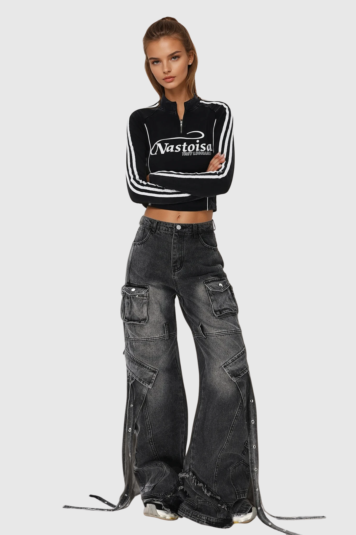 Dzvezdan Fringe Cargo Jeans combine utilitarian design with contemporary edge. These jeans feature strategic fringe detailing that adds visual interest while maintaining the functionality of cargo-style pockets. The structured denim construction provides durability for everyday wear, while the fringe accents deliver a distinctive aesthetic that sets them apart. Ideal for those seeking a balance between practical styling and fashion-forward details.