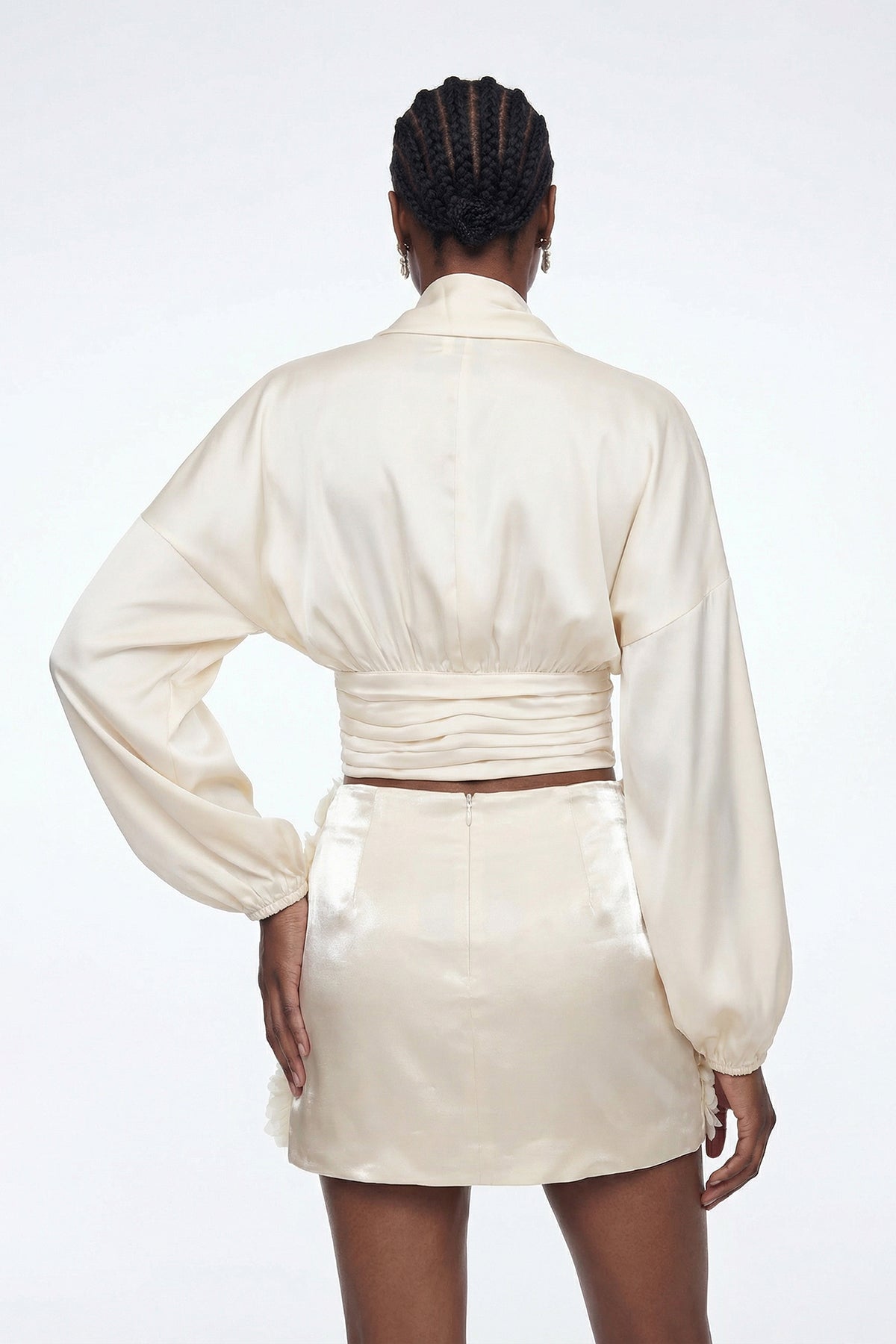 Elizabet Plunge Satin Skirt Set